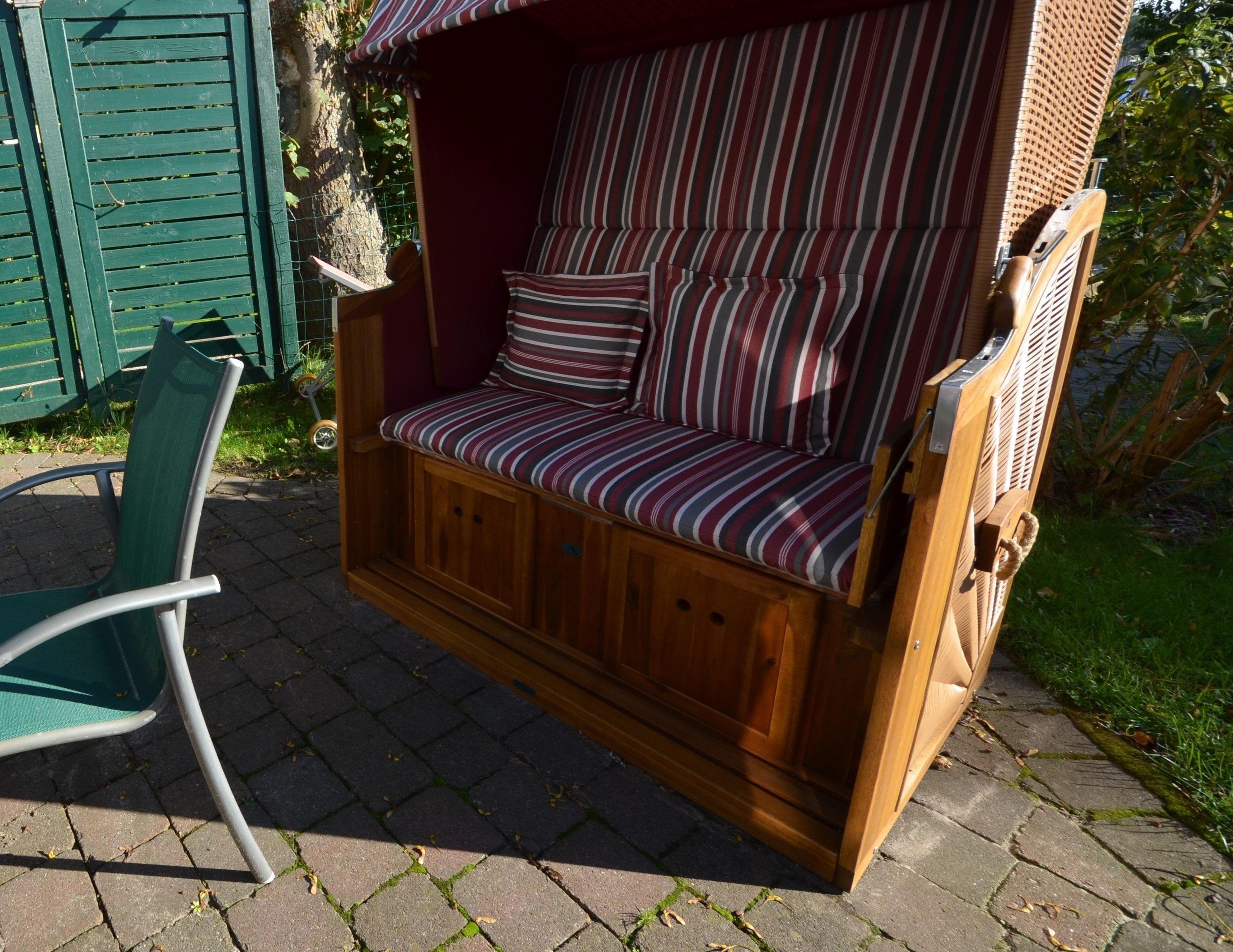 Das Haus hat einen eigenen separaten Eingang, einen kleinen Garten mit Terrasse, Gartenmöbeln und Strandkorb.