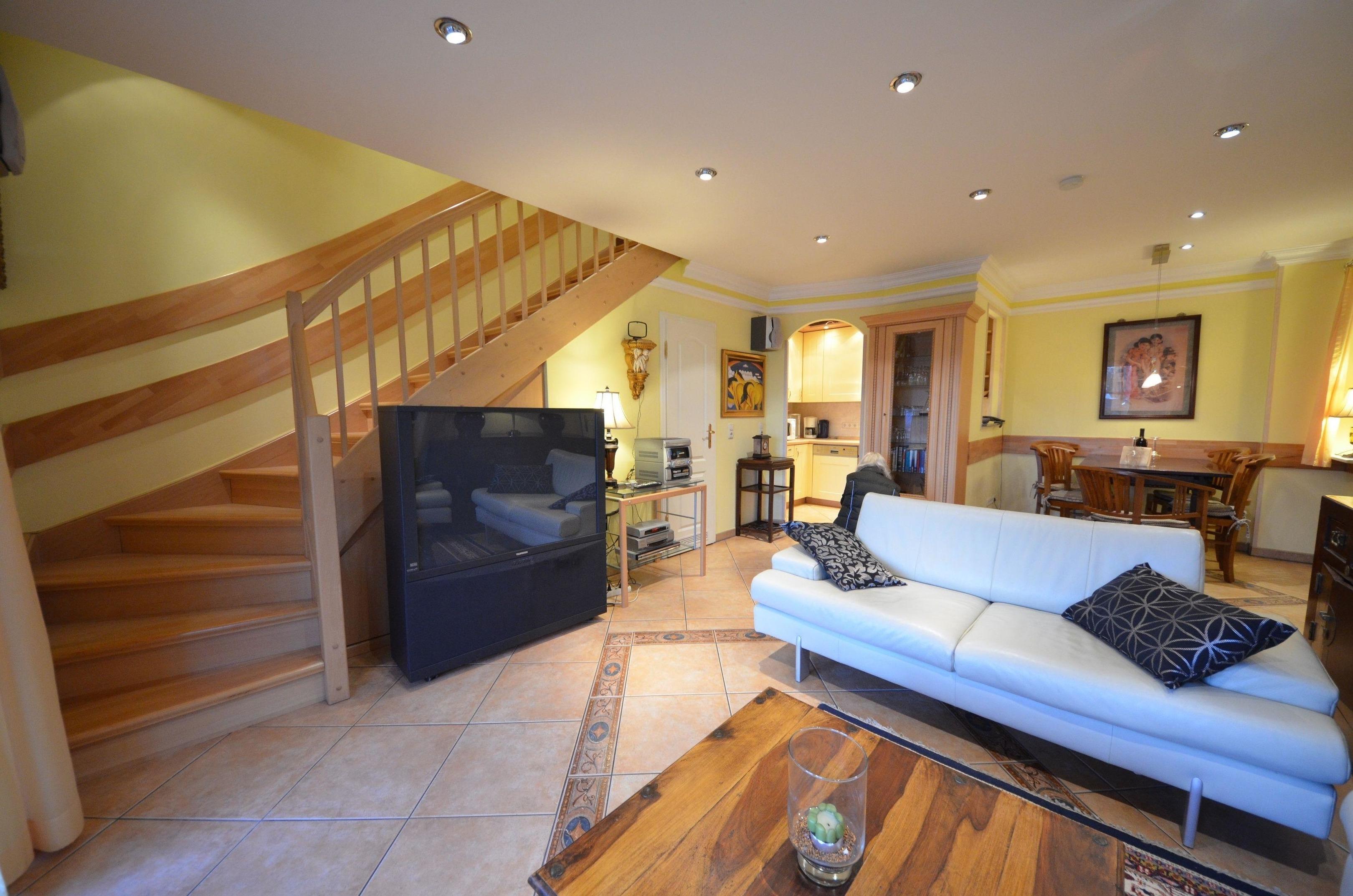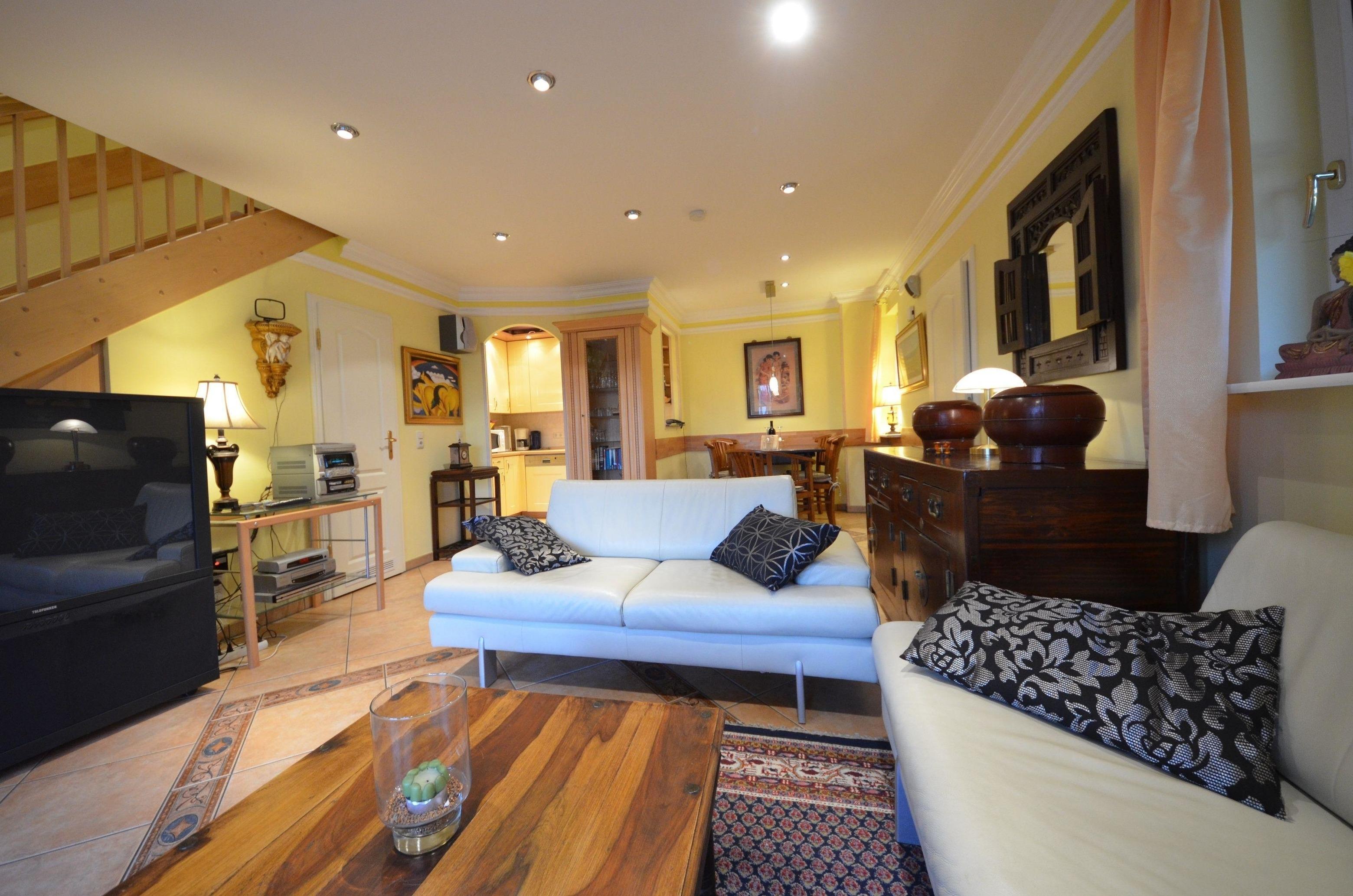 großzügiges Wohn- Esszimmer, schöne Couchgarnitur mit Opiumtisch,