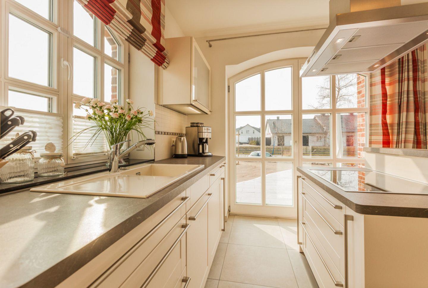 KÜCHE // offene Küche, Kücheninsel mit Induktionsfeld und Sitztresen, Spülmaschine, Kühlschrank mit Gefrierfach, Backofen, Toaster, Wasserkocher, Kaffeemaschine, reichlich Besteck, Geschirr und Küchenutensilien ++