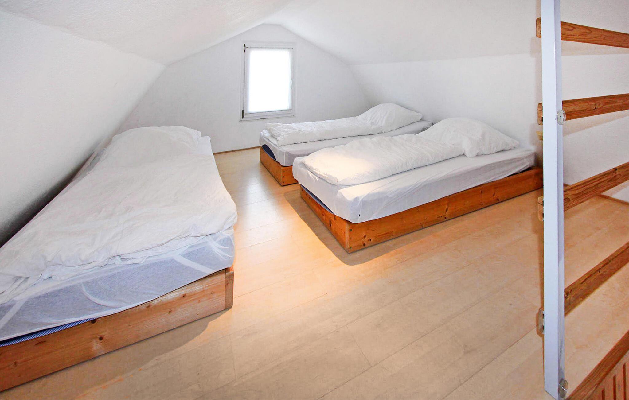 Der Wohnung ausgestattet mit einem Wohnraum (Polstermöbel, Esstisch, Flachbild TV, Radio), einer offenen Küchenzeile (E-Herd mit Backofen, Kühlschrank, div. Küchengeräte), einem Schlafraum (Doppelbett), einem Schlafboden mit 3 Einzelbetten (Zugang über eine steile Raumspartreppe) sowie einem Bad mit DU/WC und Elektroheizung.
