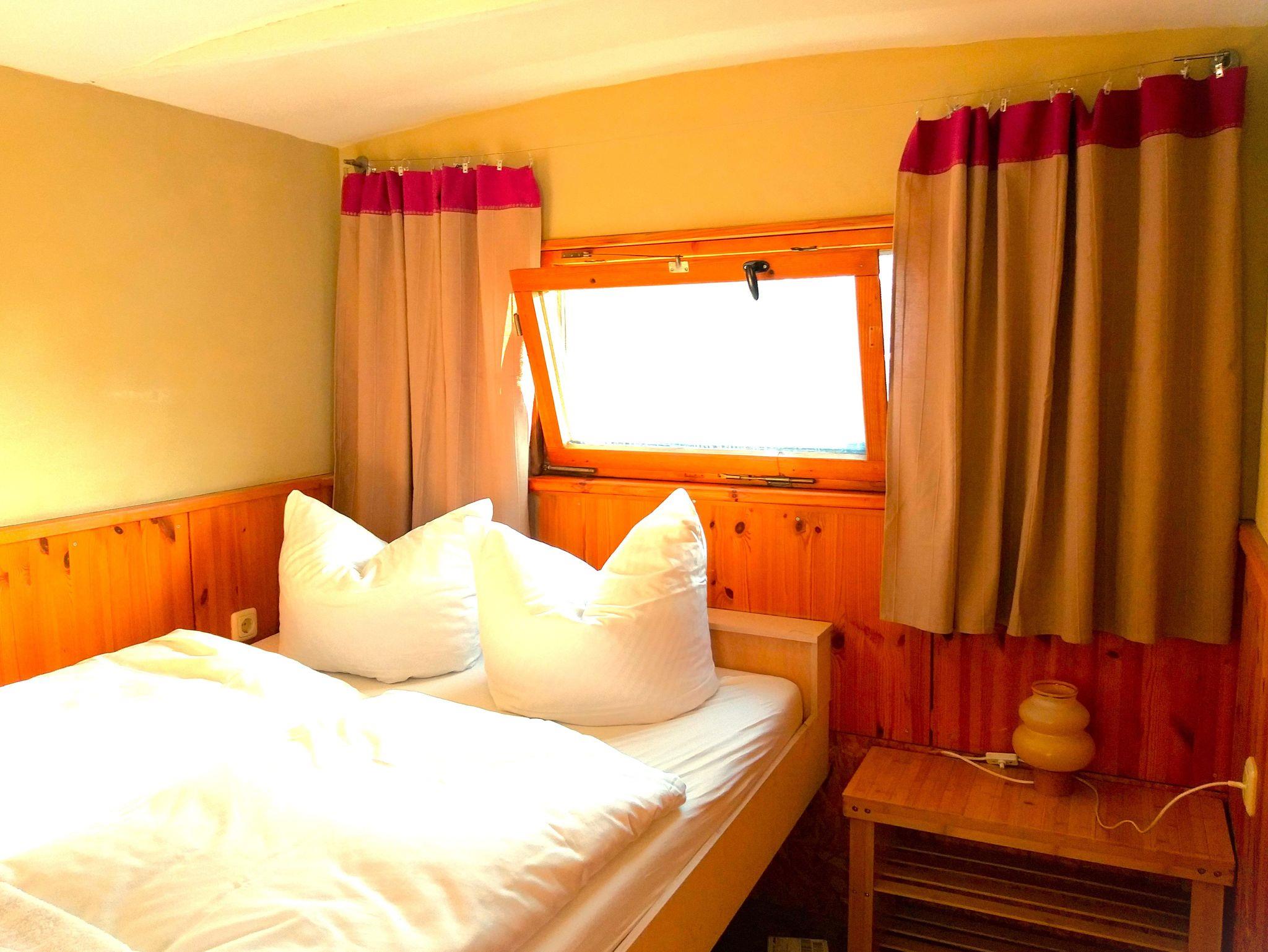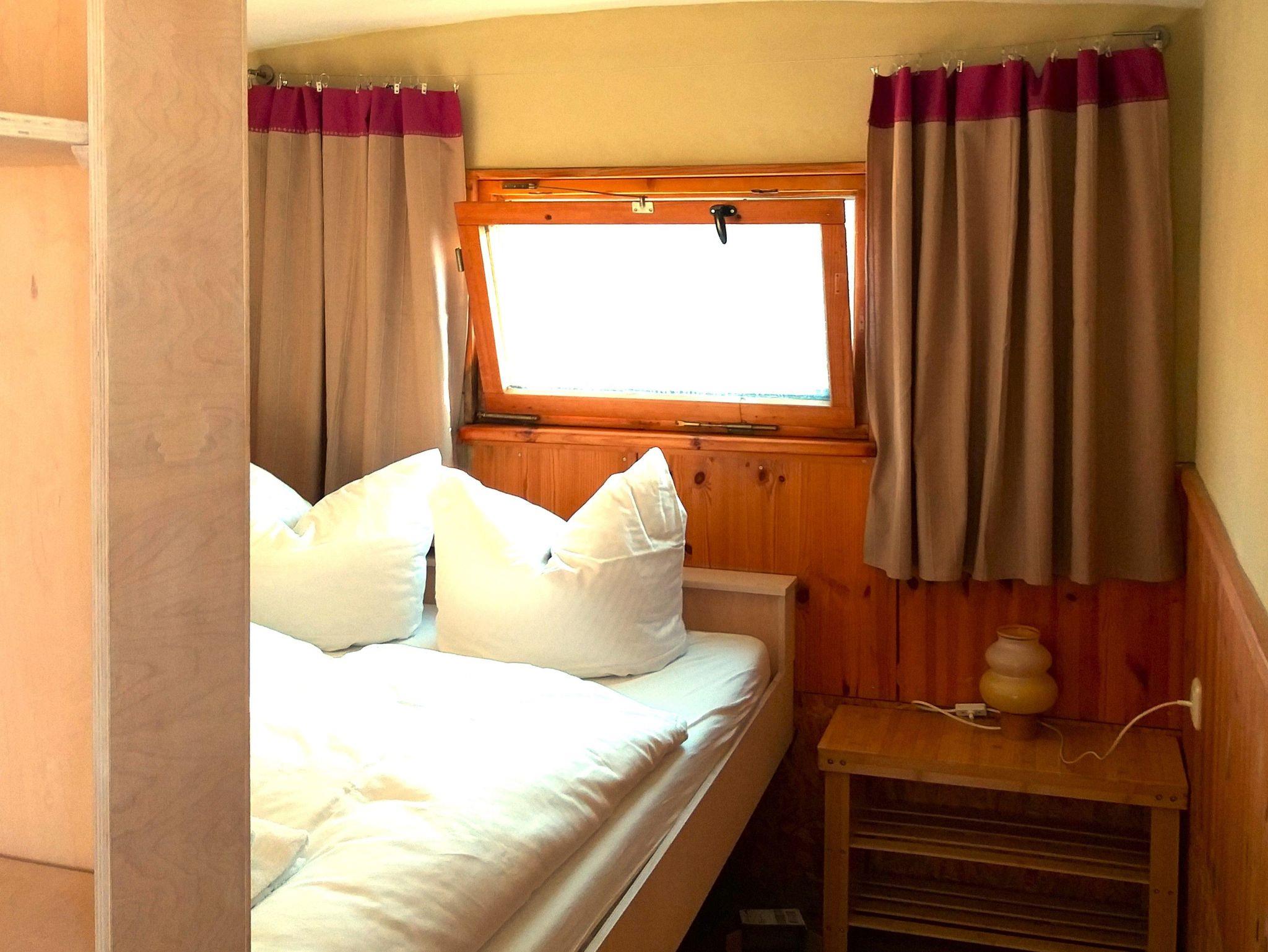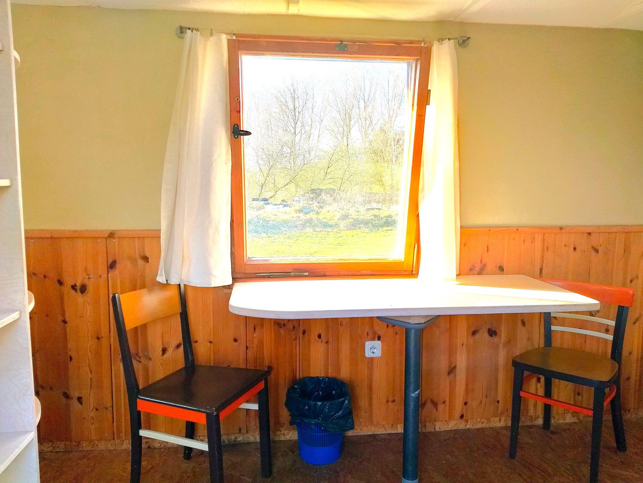 Unser Wohnwagen 4 bietet Platz für bis zu 3 Personen und ist mit einer Elektroheizung ausgestattet. Die Einrichtung umfasst ein Doppelbett (140x200cm), eine ausziehbare Schlafcouch (120x190 cm) für 1 Personen, einen Schreibtisch, einen Garderobenschrank und einen Couchtisch - alles in einem großen Raum (ca. 16qm). Ein eventuell benötigtes Babybett kann von uns zur Verfügung gestellt werden.