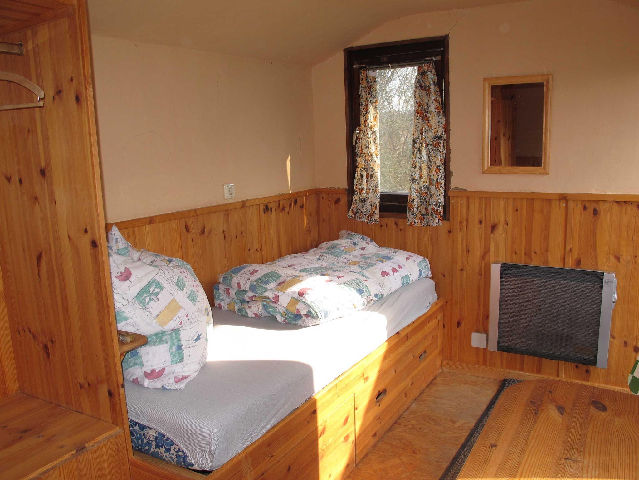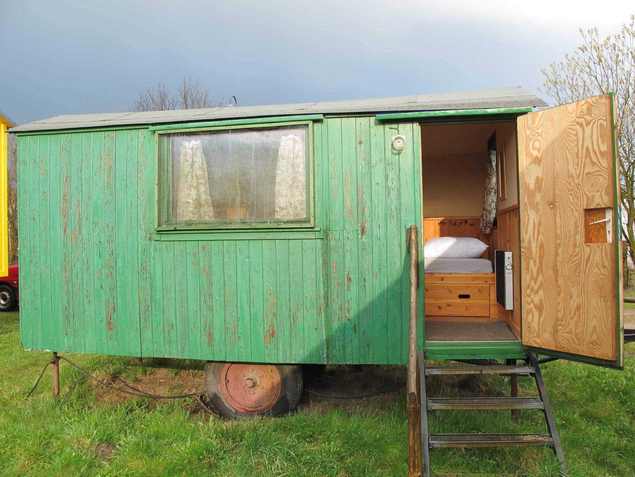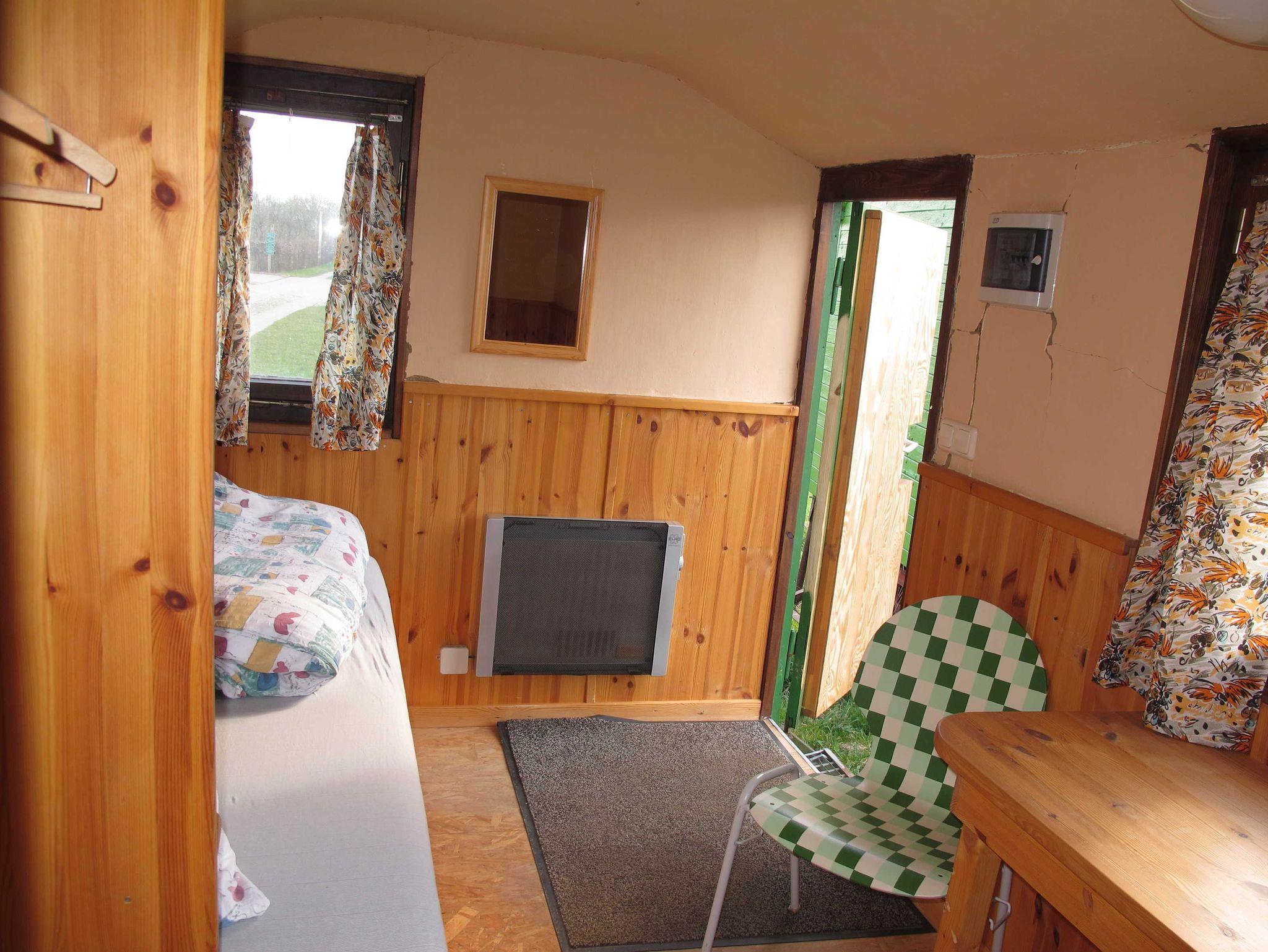 Unser Wohnwagen 1 ist ca. 8m² groß, mit zwei Betten ausgestattet und mit einer Elektroheizung beheizbar.