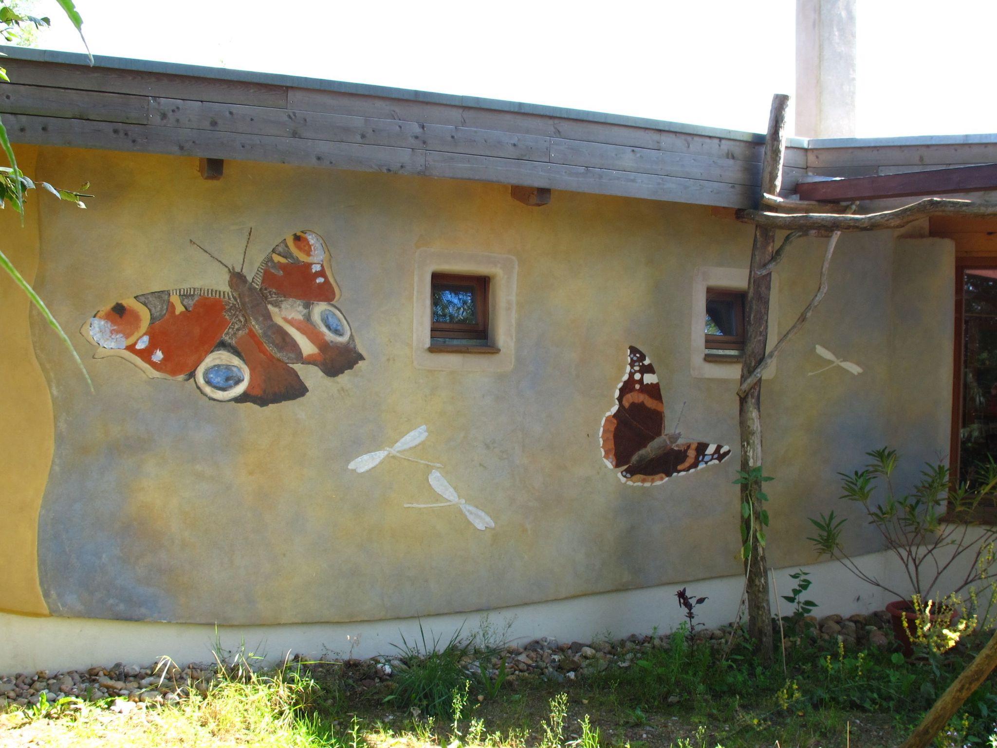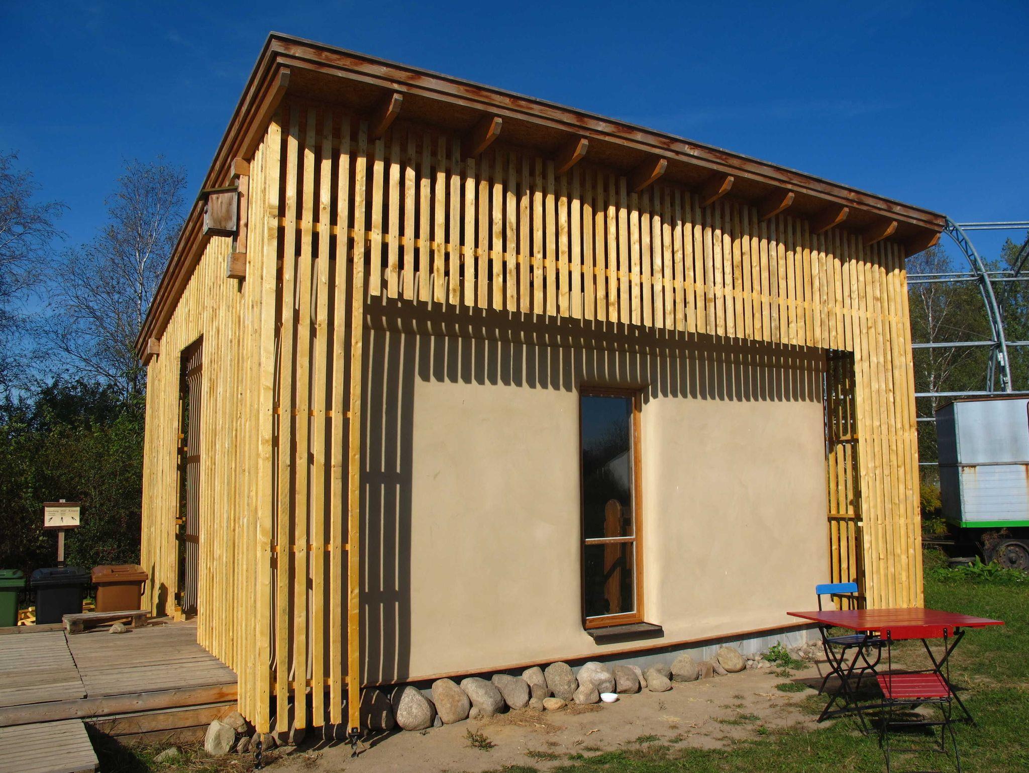 Die gemeinschaftlich benutzten Sanitäranlagen (Toilette + Waschraum) befinden sich auf der Rückseite der Ferienzimmer 1-5, weiterhin im Sanitärcontainer hinter der Sommerküche und bei Bedarf zusätzlich im Lehmhaus des Wangeliner Gartens.