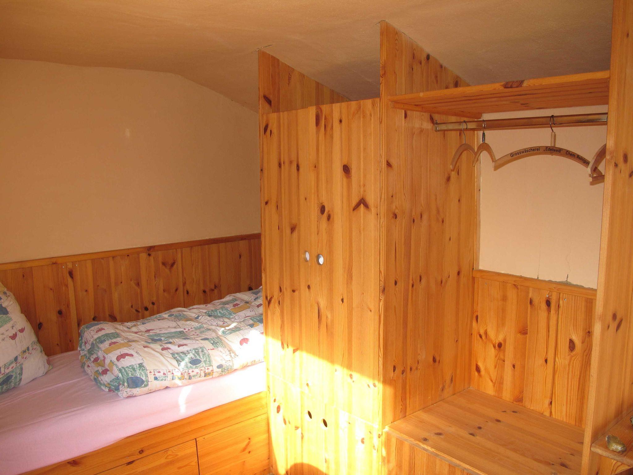 Außer den beiden Betten befinden sich zwei Stühle ein Tisch und ein Schrank in Raum. Handtücher und Bettwäsche sind inklusive.