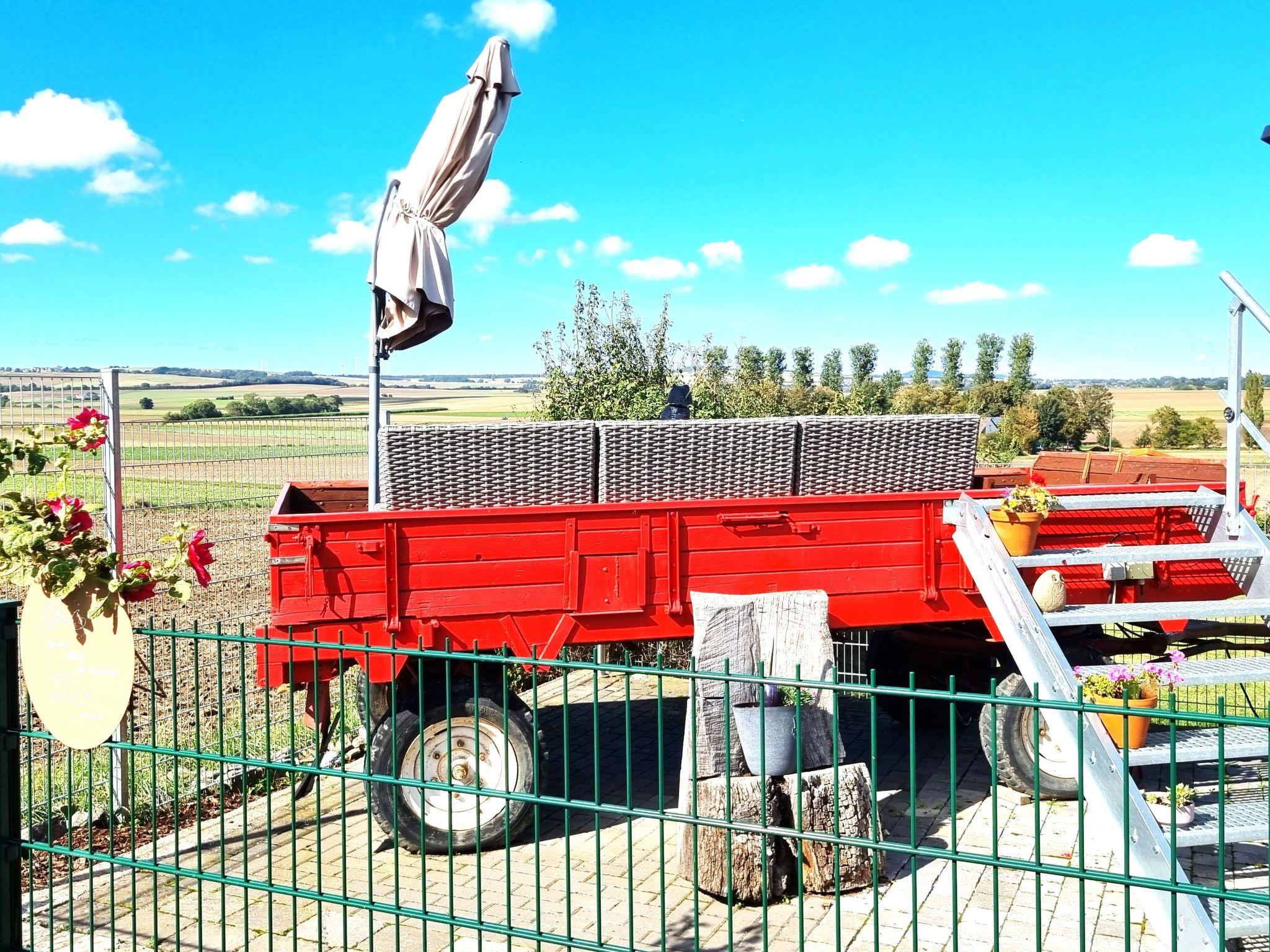 Hinter dem eingezäunten Garten befindet sich ein weiteres, großes Gartengelände (1000 m²) mit eingezäunter Spielwiese für die Hunde (Weidezaun – 50 m²). Direkt hinter dem Grundstück des Wellness-Loft beginnen die Feld- und Wanderwege.