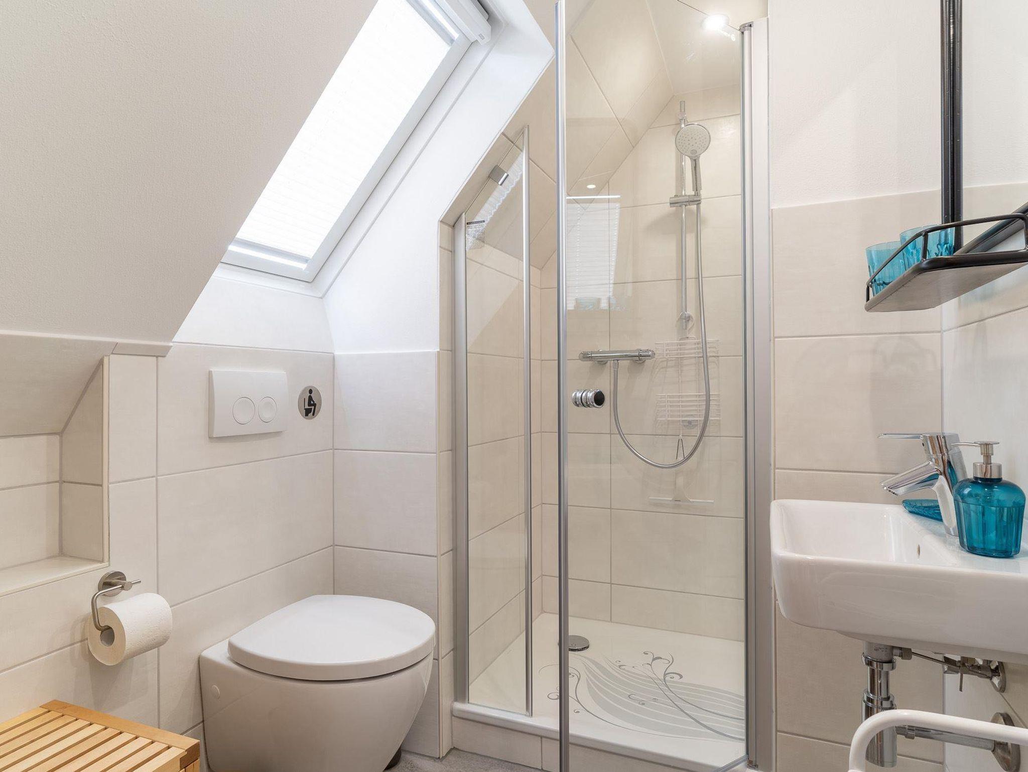 • Sanitäranlagen: Haartrockner, Dusche, Waschbecken, bodengleiche Dusche, Bettwäsche und Handtücher leihbar für 15,00 € p.P.