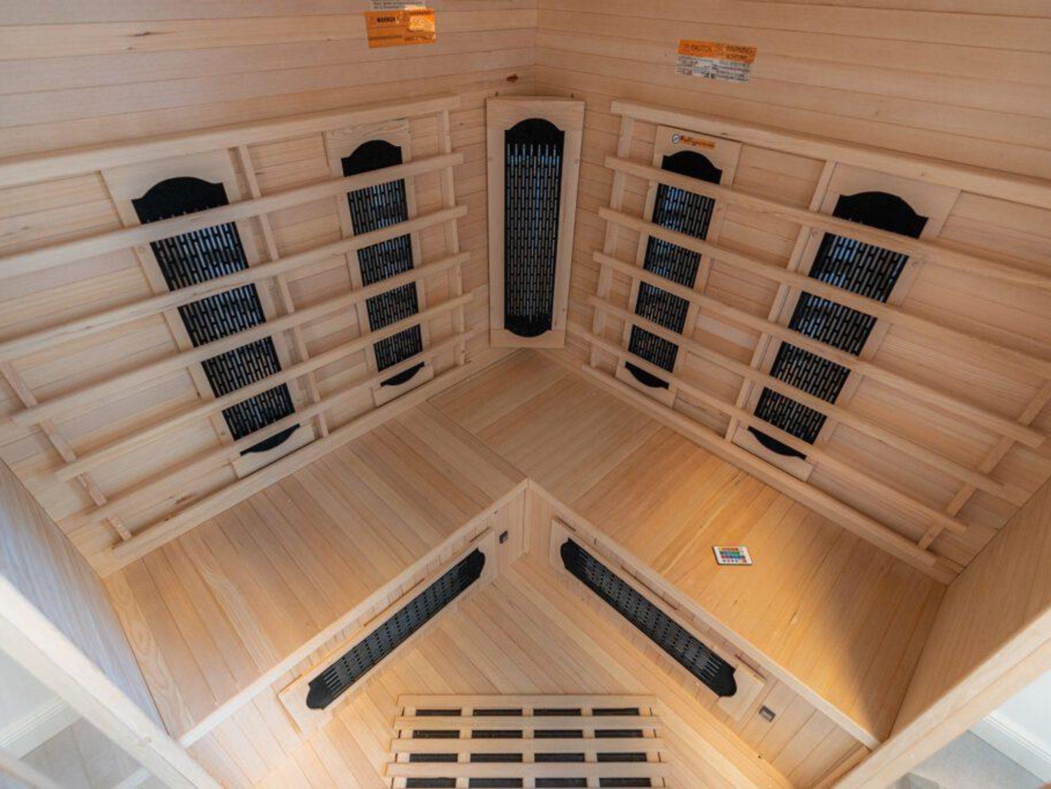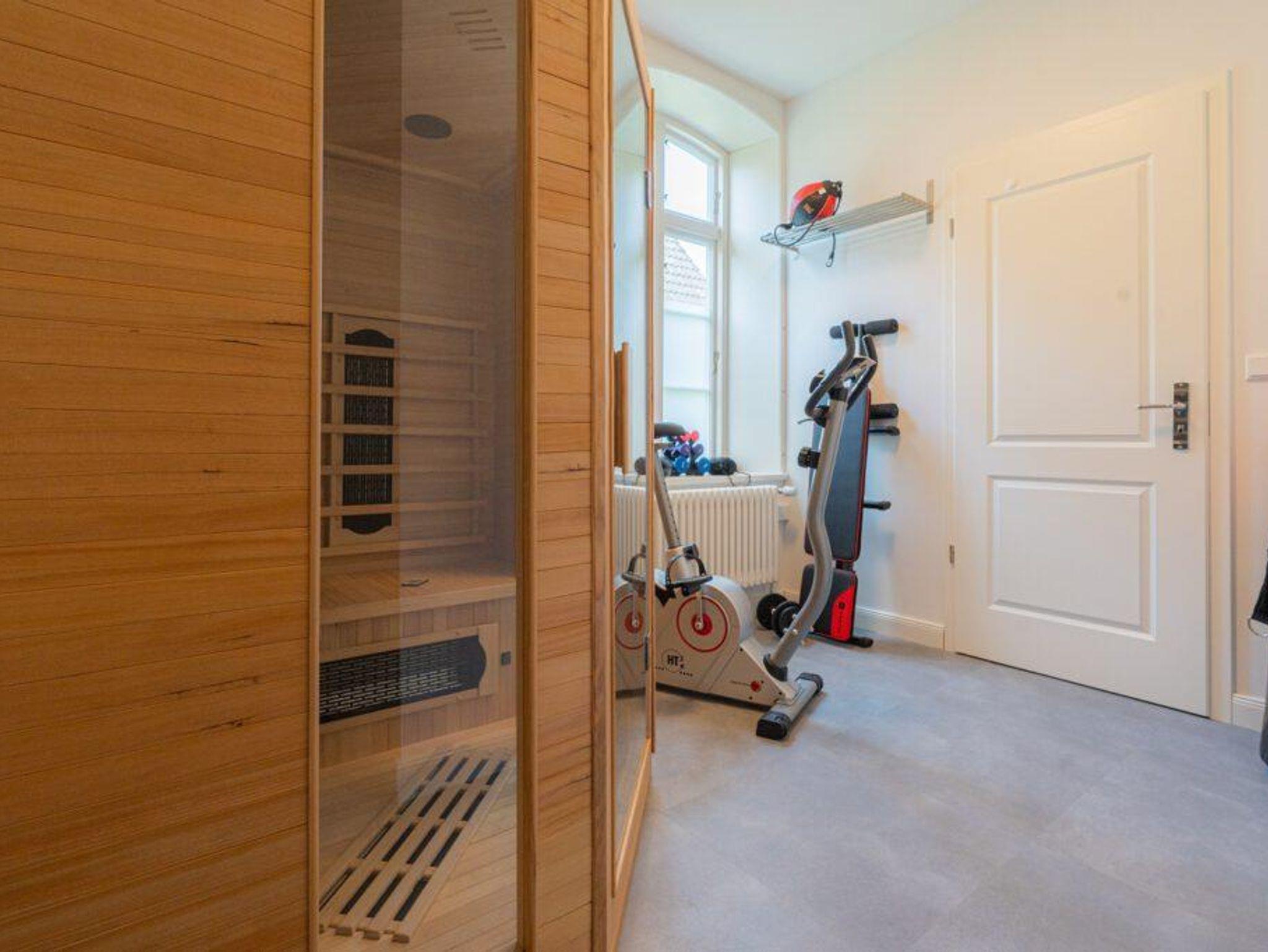 Sauna/Fitnessraum: 4 Personen Infrarotsauna, Ergometer, Hantelbank, Boxsack, Klimmzugstange.
