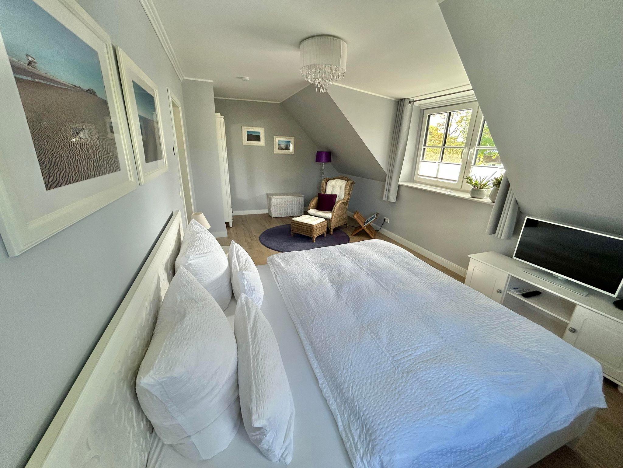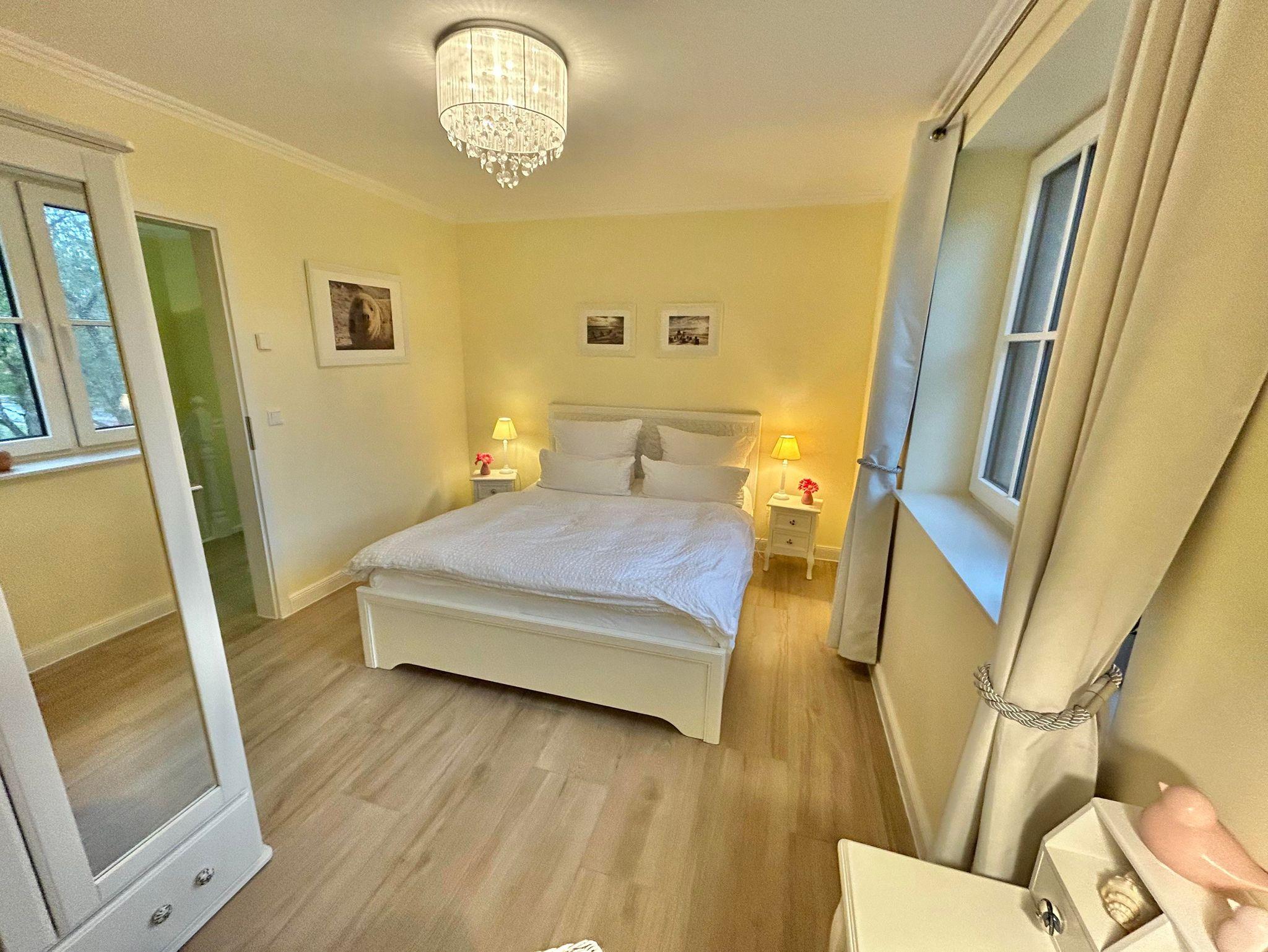 2 großzügige Schlafzimmer mit Doppelbetten ( 180x200cm und 160x200cm ), Kleiderschränken und einem zusätzlichen Magenta-TV sowie verfügen die Zimmer über einen Sekretär und eine Leseecke mit einen Rattanohrensessel.