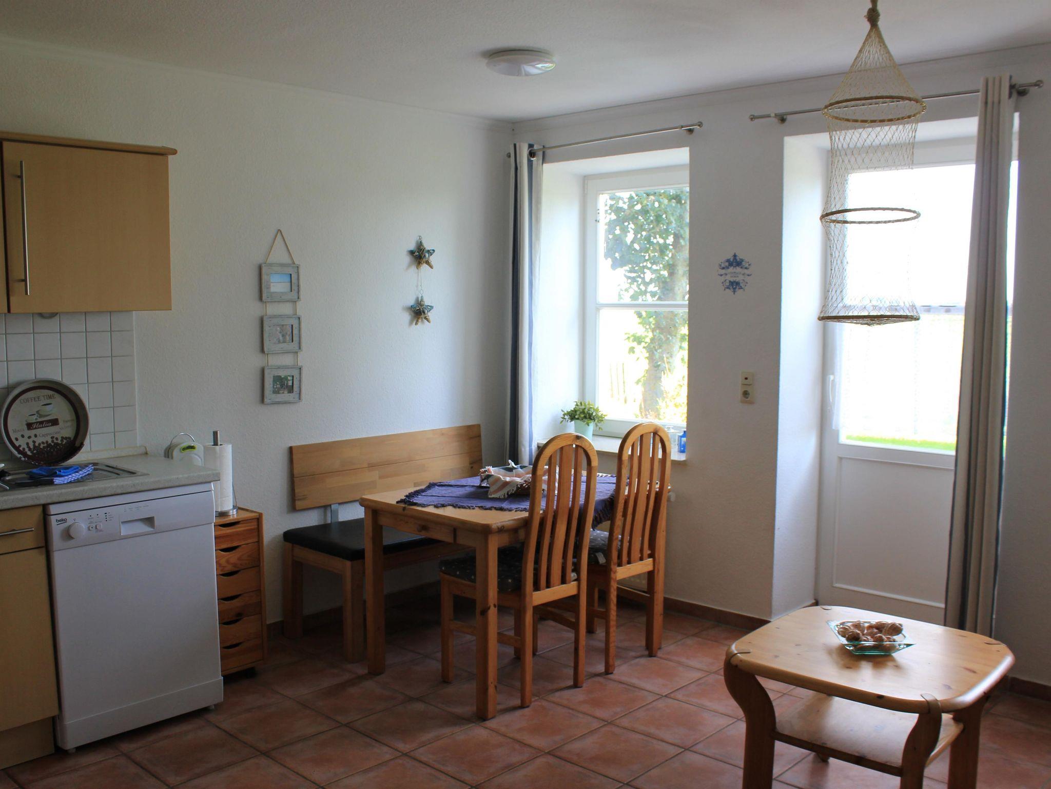 Im Erdgeschoss befindet sich der Eingangsbereich mit Garderobe, 1 Gäste-WC und der gemütliche Wohnraum mit Sat-TV und Schlafcouch, Essgruppe und der integrierten, komplett ausgestatteten Küchenzeile mit Geschirrspüler.