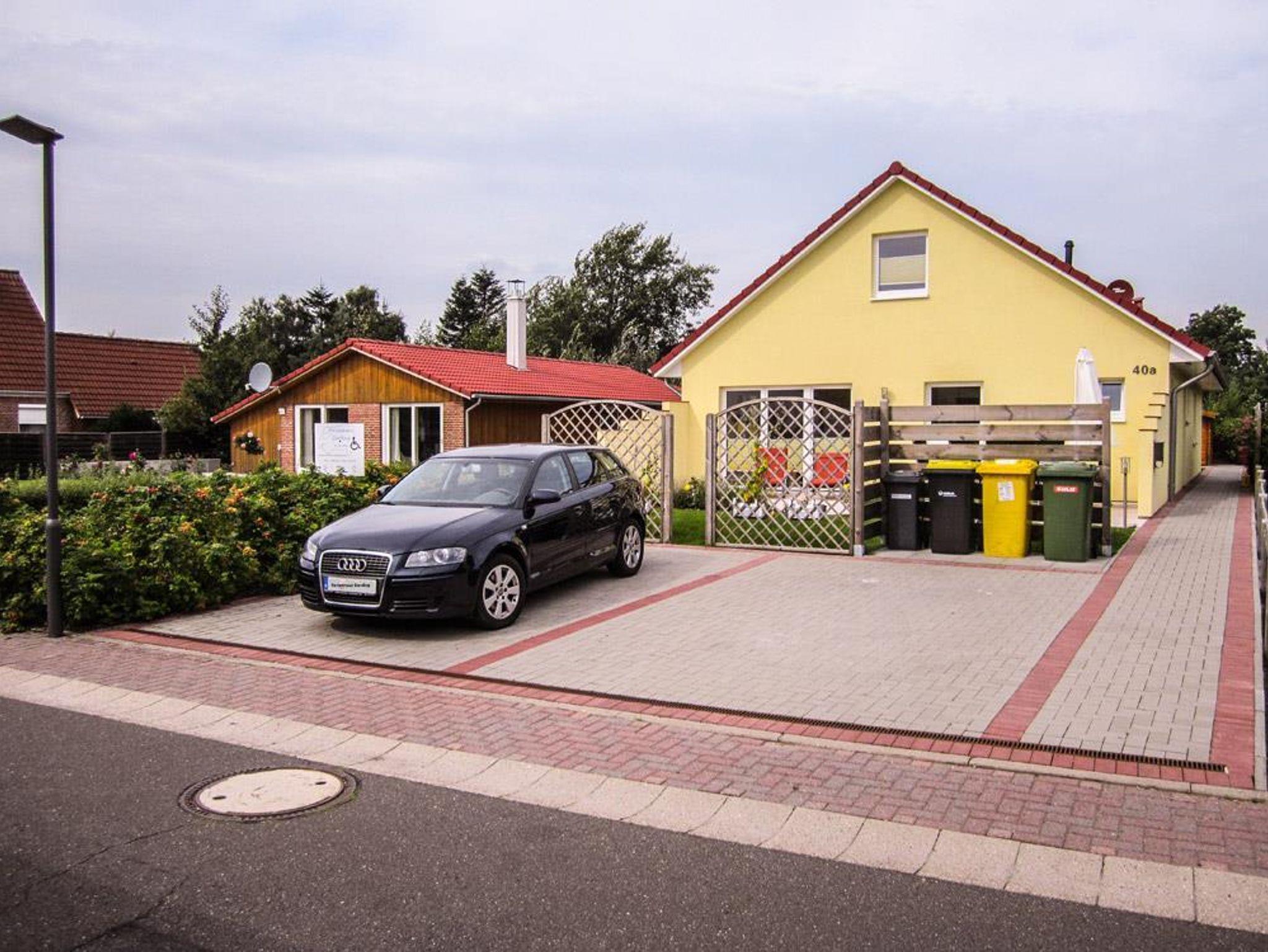 Willkommen im Erholungsort Garding in unserem Ferienhaus. ~ 4-Sterne Wohnen; Kinderplus und Rolliplus zertifiziert~ Es enthält eine moderne und komplett ausgestattete Einbauküche die offen zum großen, sonnendurchfluteten Wohnzimmer ist. Der Esstisch kann bei Bedarf erhöht werden und ist dann auch für E Rollis unterfahrbar. Höhenverstellbare Kinderstühle stehen auf Wunsch kostenfrei zur Verfügung. Die große Südterrasse ist schwellenfrei zu erreichen und komplett möbliert. Sie inspiriert zu einem Frühstück im Sonnenschein und zu einem gemütlichen Abend im Licht der untergehenden Sonne. Die Küche ist ausgestattet für bis zu 12 Personen und bietet einen Geschirrspüler sowie diverse andere Haushaltsgeräte. Die Tür zum großen Bad öffnet sich auf Wunsch automatisch. Dort gibt es eine bodengleiche Dusche (150 x 150 cm) mit einer 52 cm hohen Bank. Das WC ist 50 cm hoch und hat Stützgriffe. Der Waschtisch ist unterfahrbar, der Spiegel ist kippbar. Flexibel einsetzbare Haltegriffe unterstützen Sie. Ein Duschstuhl oder ein Duschrollstuhl stehen auf Wunsch kostenfrei zur Verfügung. Zusätzlich ist ein Gäste WC vorhanden. LAN Anschluss und SAT TV Anschluss sind in jedem Zimmer vorhanden. Zwei Schlafzimmer sind mit Doppelbetten ausgestattet. Die Höhe von 50 cm ermöglicht einen bequemen Aus- und Einstieg. Die Lattenroste sind elektrisch höhenverstellbar. Fliegengitter schützen vor ungebetenen Besuchern, verdunkelnde Plissees ermöglichen Schlafen zu jeder Zeit. Im Kinderzimmer steht ein Kojenbett, es enthält im Auszug ein weiteres Bett. In diesem Zimmer befinden sich zahlreiche Spiele für alle Altersklassen. Auch hier schützen Fliegengitter und verdunkelnde Plissees. Kinderbetten stehen auf Wunsch kostenfrei zur Verfügung. Ein Spielplatz mit Rutsche und drei Schaukeln auf der Rückseite des Hauses, eine Liegewiese und eine weitere Terrasse ermöglichen schöne Stunden. Im Gartenhaus stehen den Gästen drei Frühstücksfahrräder und viele weitere Fahrzeuge zur Verfügung. Die Unterbringung von mitgebrachten Fahrrädern ist auch möglich. Ebenfalls gehören zum Haus zwei großzügige Parkplätze.