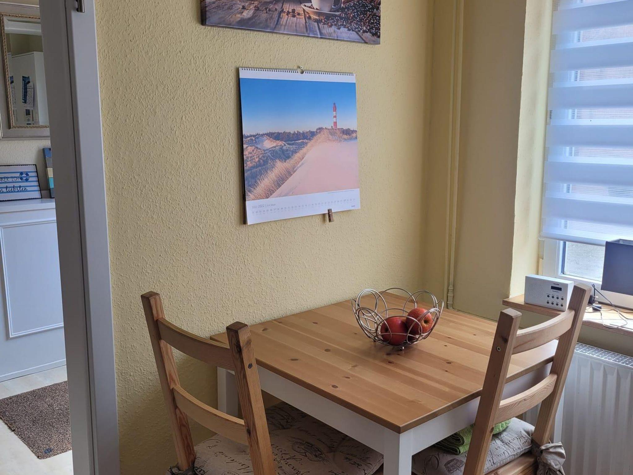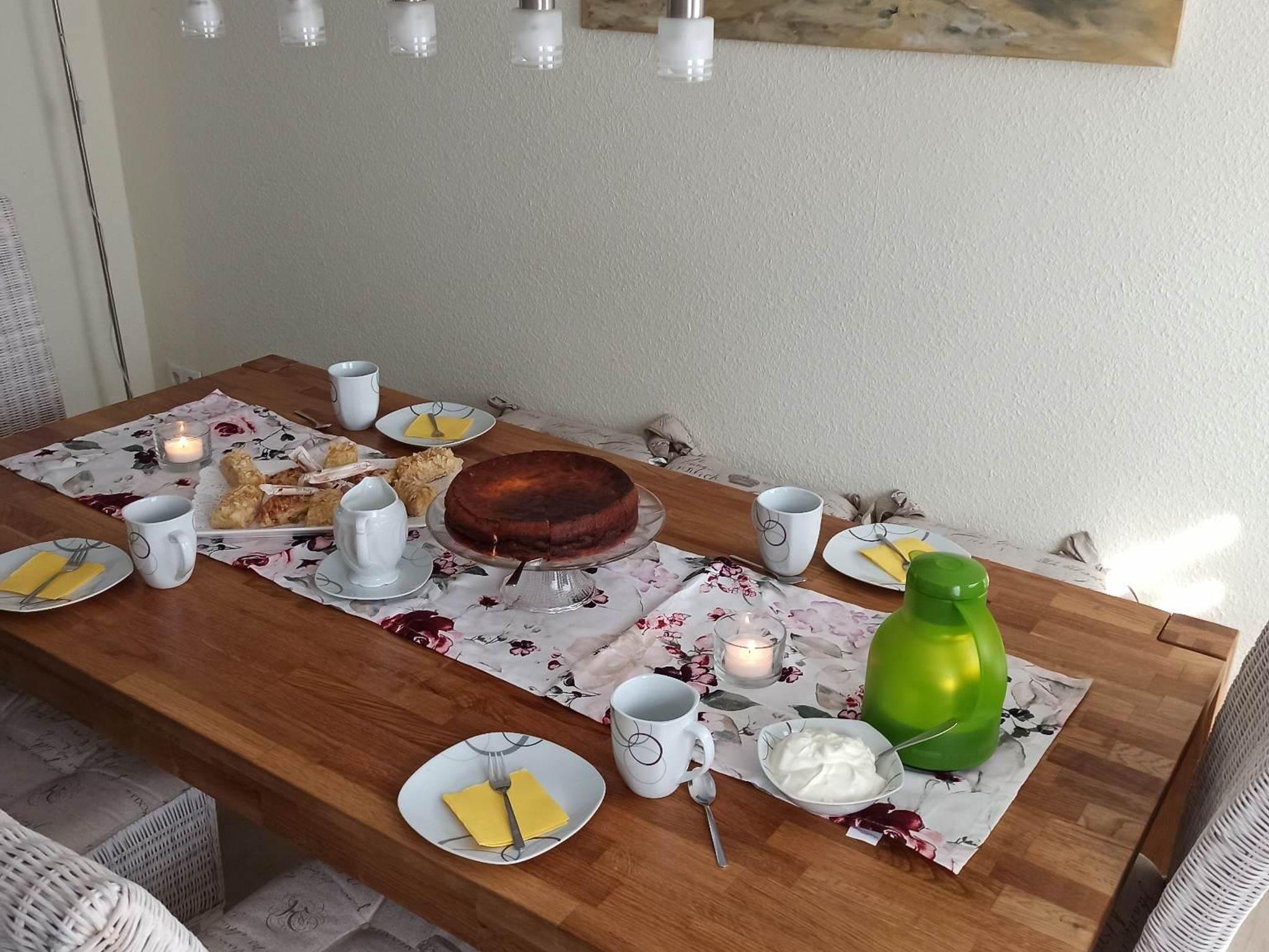 Im Erdgeschoss gibt es ein großes Bad mit ebenerdiger Dusche (ca. 1 x 1m), WC und Waschmaschine, eine Küche mit Geschirrspüler, Cerankochfeld, Backofen, Mikrowelle, Toaster, Kaffemaschine und Senseo, Kühl- Gerfrierschrank und einem Wasserkocher, ein Esszimmer mit Kaminofen, sowie ein Wohnzimmer mit gemütlicher Couch und Smart TV.