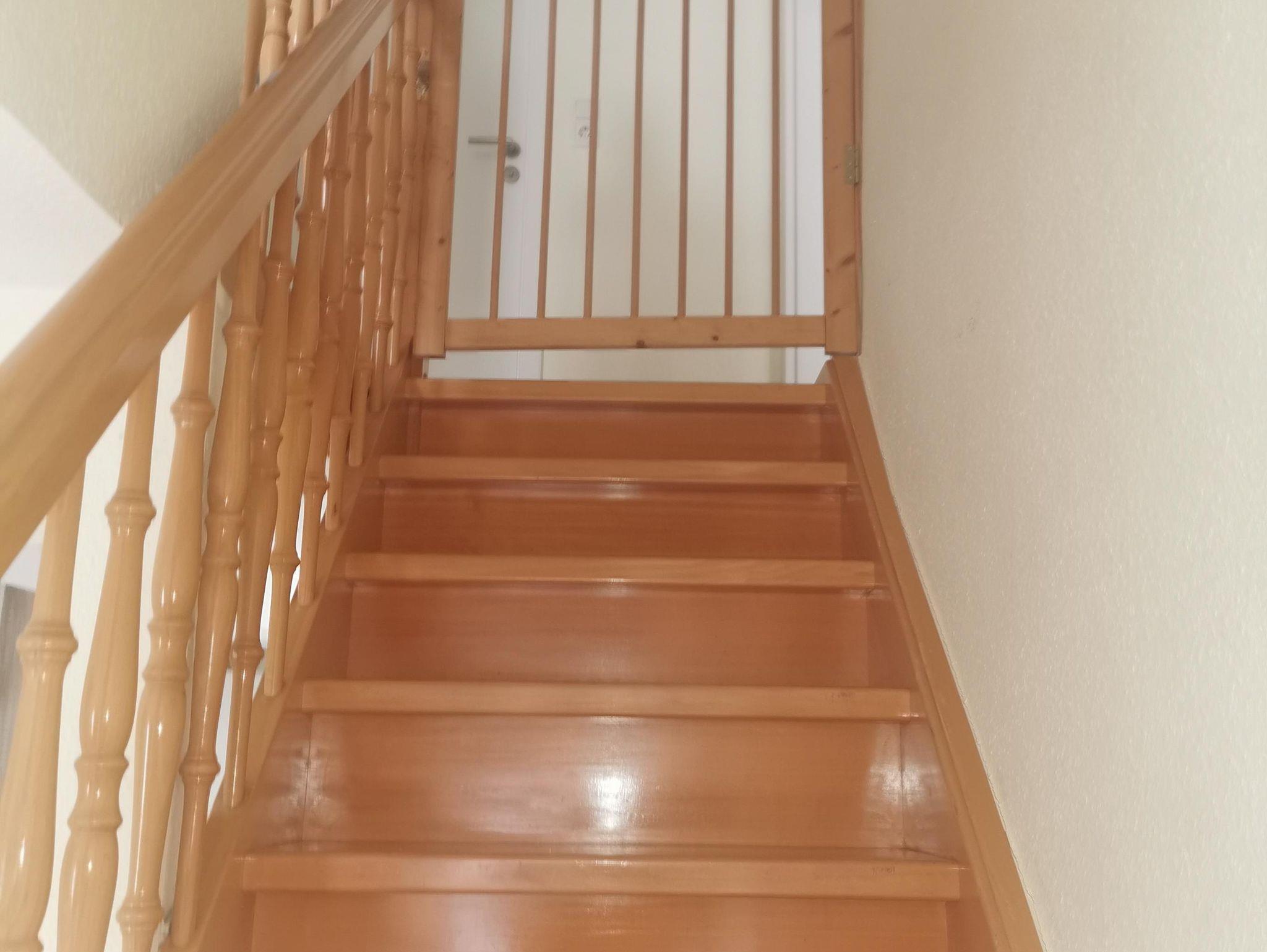 Im ersten Obergeschoss befinden sich drei Schlafzimmer mit insgesamt sechs Betten, sowie ein kleines Bad mit WC. Für Babys/Kleinkinder steht bei Bedarf ein Reisebett, ein Hochstuhl und Kindergeschirr zur Verfügung.