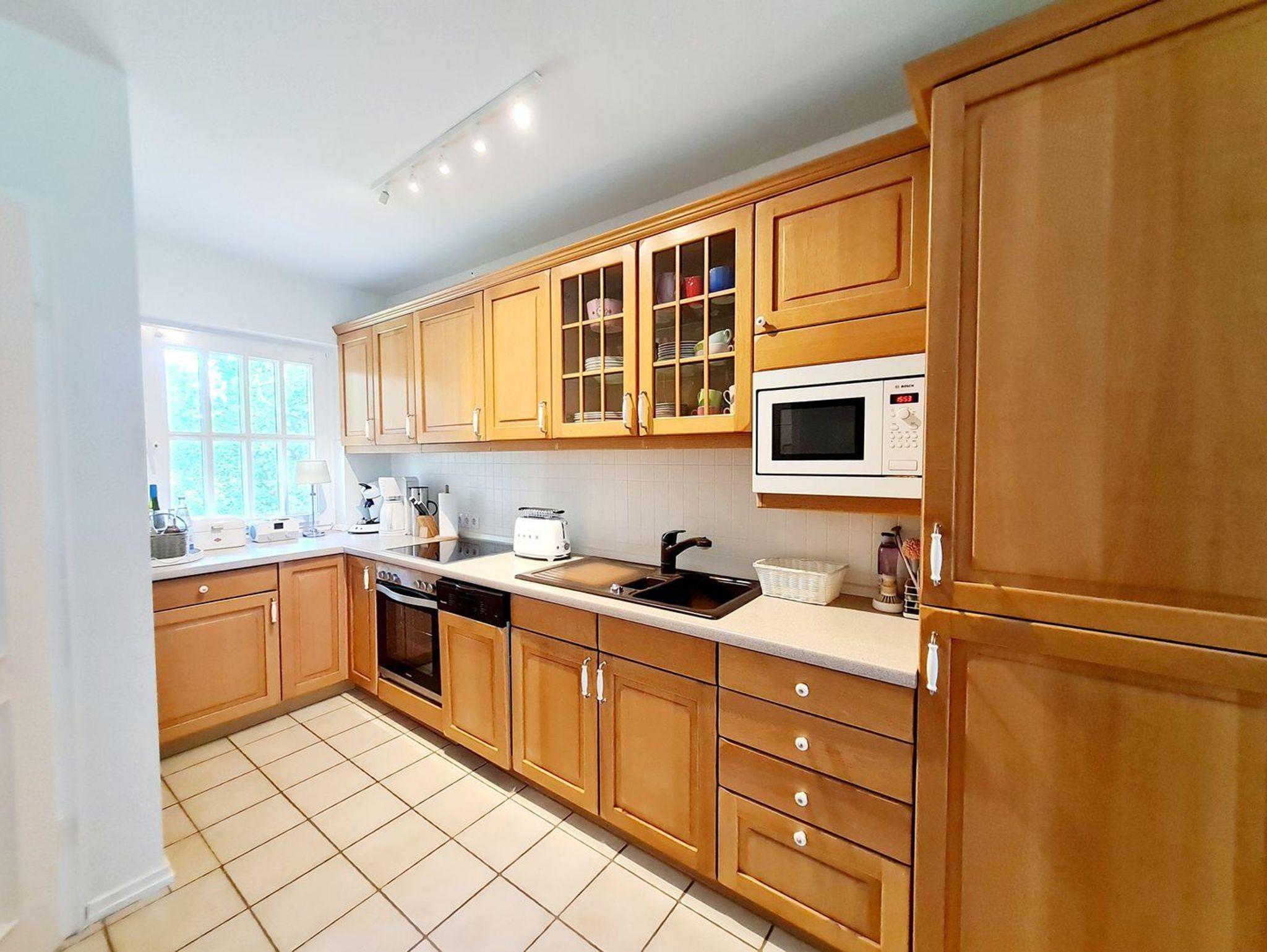Sie finden alles vor, was zu einem entspannten Urlaub gehört. Es gibt einen großen, gemütlichen Wohnbereich mit schönen Sitzmöbeln und einen LCD Fernseher und natürlich auch WLAN. Die Küche im Landhausstil ist mit allem ausgestattet (Mikrowelle, Geschirrspülmaschine etc.). Im Anschluss daran gibt es einen gemütlichen Essplatz für 4 Personen und 1 Stokke-Tripp-Trapp (inkl. Newborn-Set), so daß Sie sich wie Zuhause fühlen können.