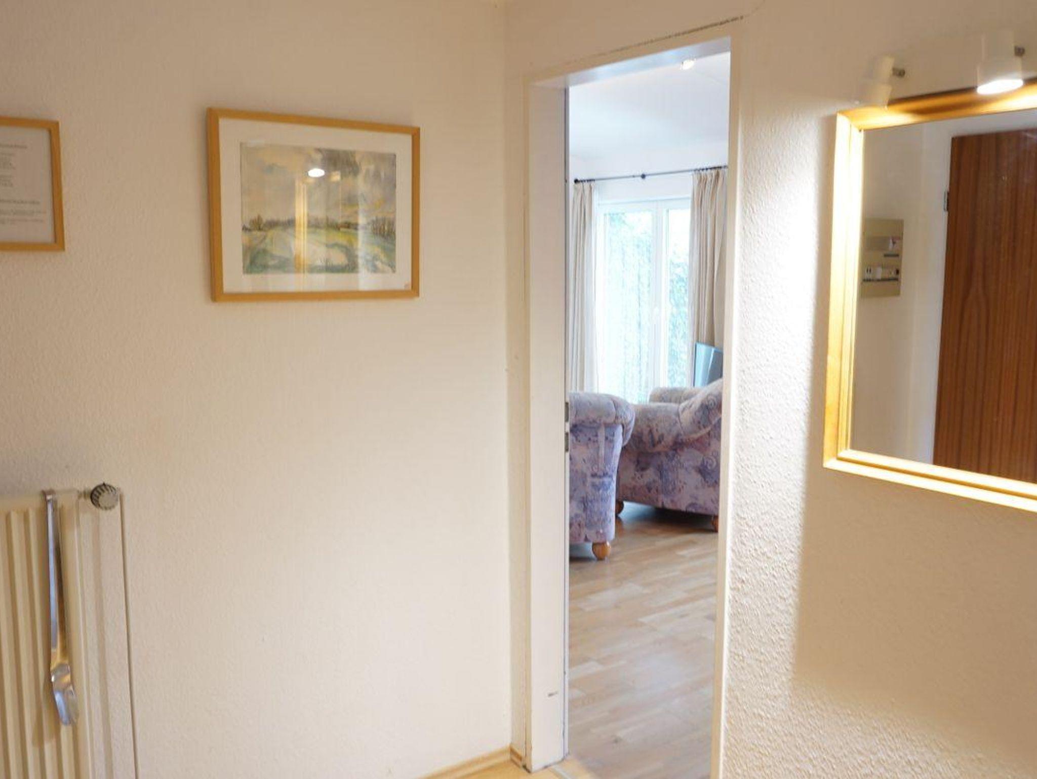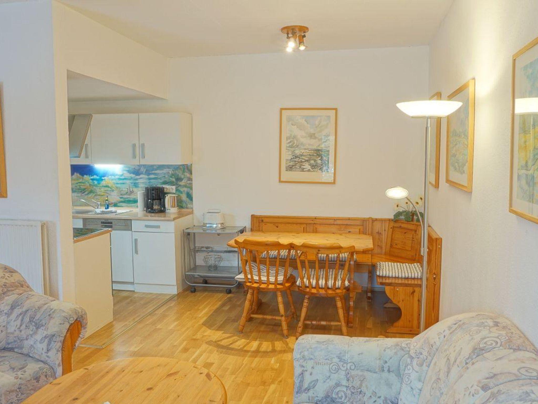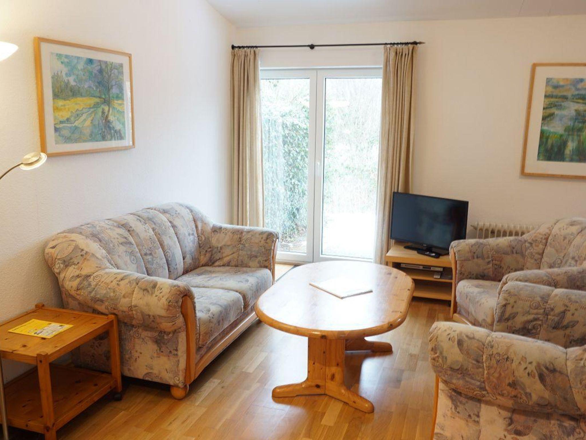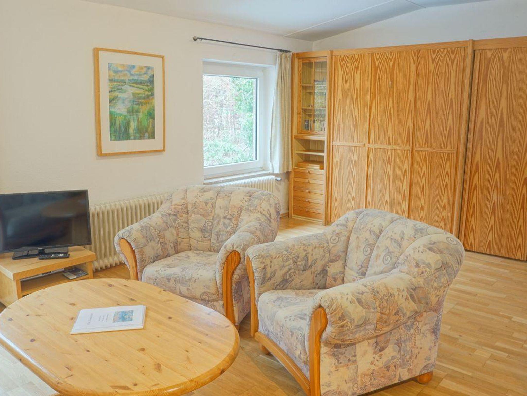 Die Unterkunft verfügt über insgesamt zwei Zimmer und bietet Schlafmöglichkeiten für bis zu vier Personen. Das separate Schlafzimmer (Doppelbett 180er Breite) ist mit Teppichboden ausgestattet und sorgt für eine angenehme Atmosphäre, während das Wohnzimmer mit hochwertigem Parkett, einer Sofaecke, einem Sessel sowie einer Kommode zum Verweilen einlädt. Im Wohnzimmer gibt es ein Wandbettschrank zum runter klappen als Doppelbett (160er Breite). Für zusätzliche Annehmlichkeit finden Sie im Wohnbereich einen Fernseher (25-34 Zoll) mit Satellitenanschluss sowie einen Blu-ray-Spieler. Spiele für gemütliche Stunden stehen ebenfalls bereit.