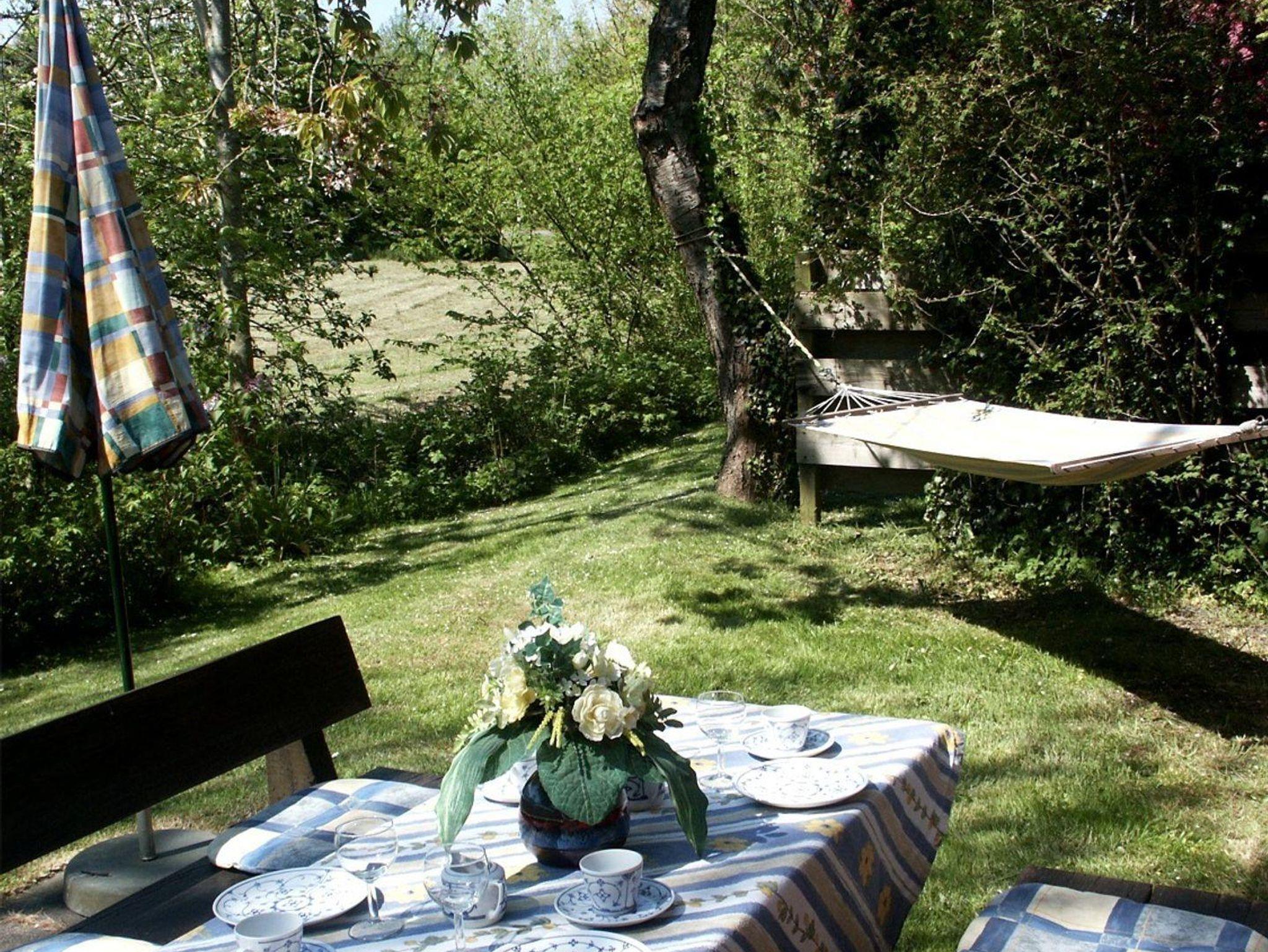 Besonderes Augenmerk gilt dem Außenbereich, der sich ideal für entspannte Tage im Freien anbietet. Ihnen stehen eine Terrasse mit Gartenmöbeln und Sonnenliegen, ein Sonnenschirm und sogar eine Hängematte zur Verfügung. Der liebevoll angelegte Garten beherbergt außerdem einen Sandkasten und eine Schaukel, wodurch auch kleine Gäste auf ihre Kosten kommen. Für gesellige Abende können Sie den Kohlegrill nutzen. Ein Privatparkplatz am Haus sorgt für eine bequeme An- und Abreise.