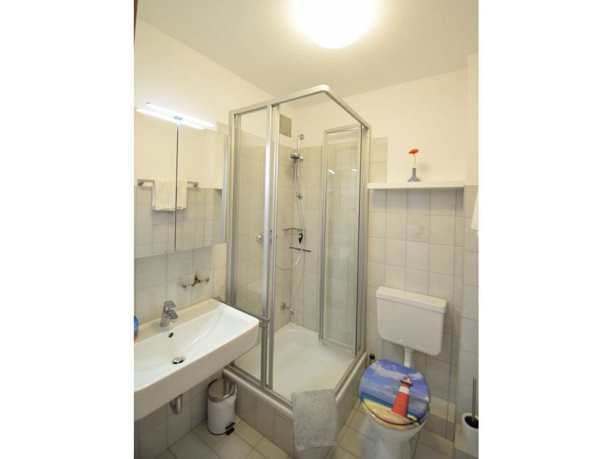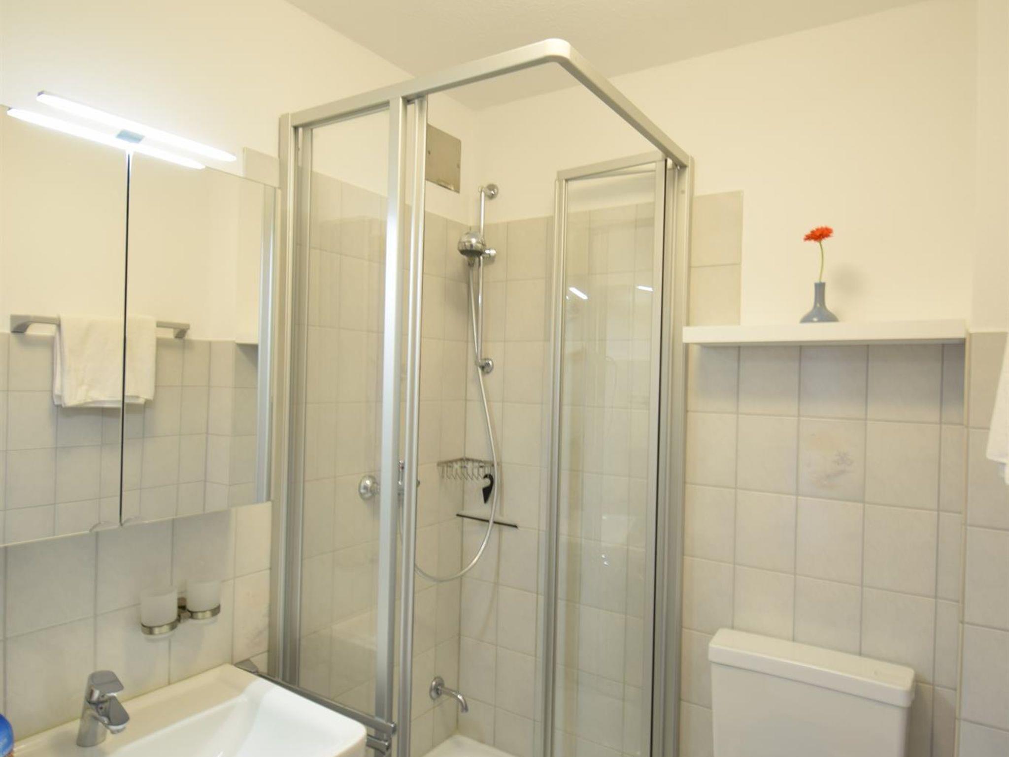 Das Badezimmer ist mit Dusche und WC gut ausgestattet.