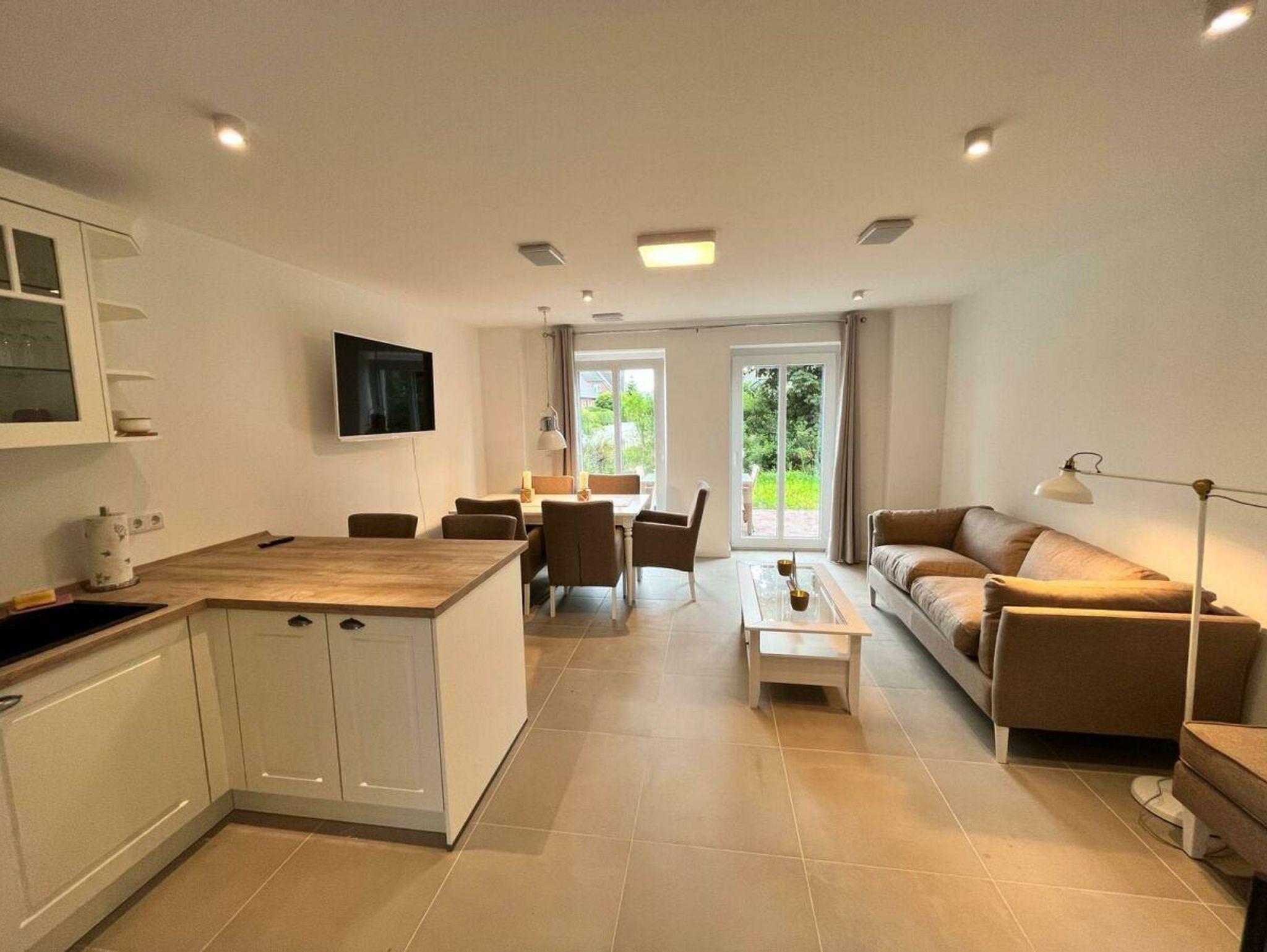 Modernes Friesenhaus in Garding mit Kamin, Terrasse, Garten und hochwertiger Ausstattung für erholsame Urlaubstage.