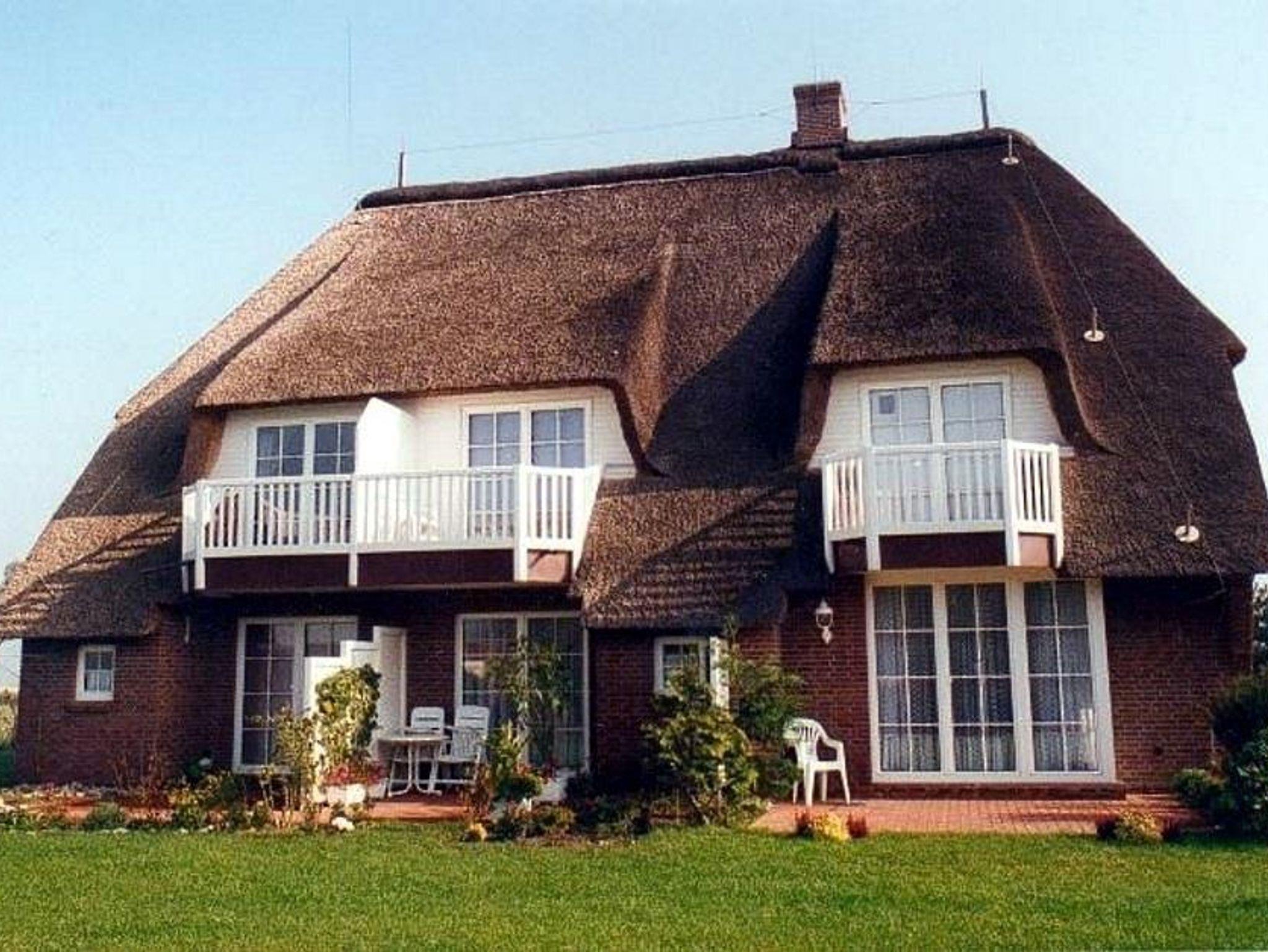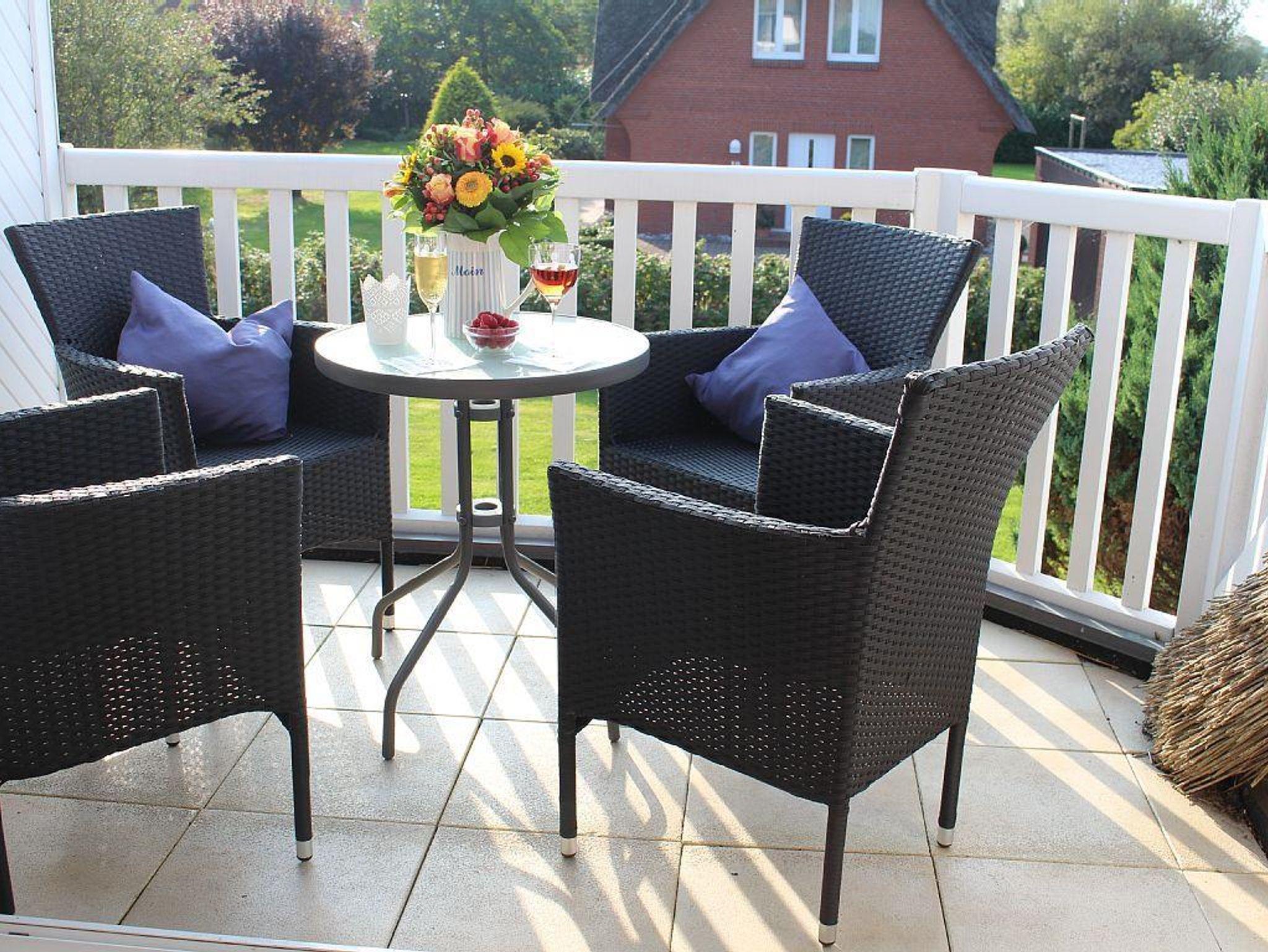 Gemütliche Ferienwohnung unterm Reetdach in Garding, ideal für entspannte Nordseeurlaube mit Balkon und moderner Ausstattung.
