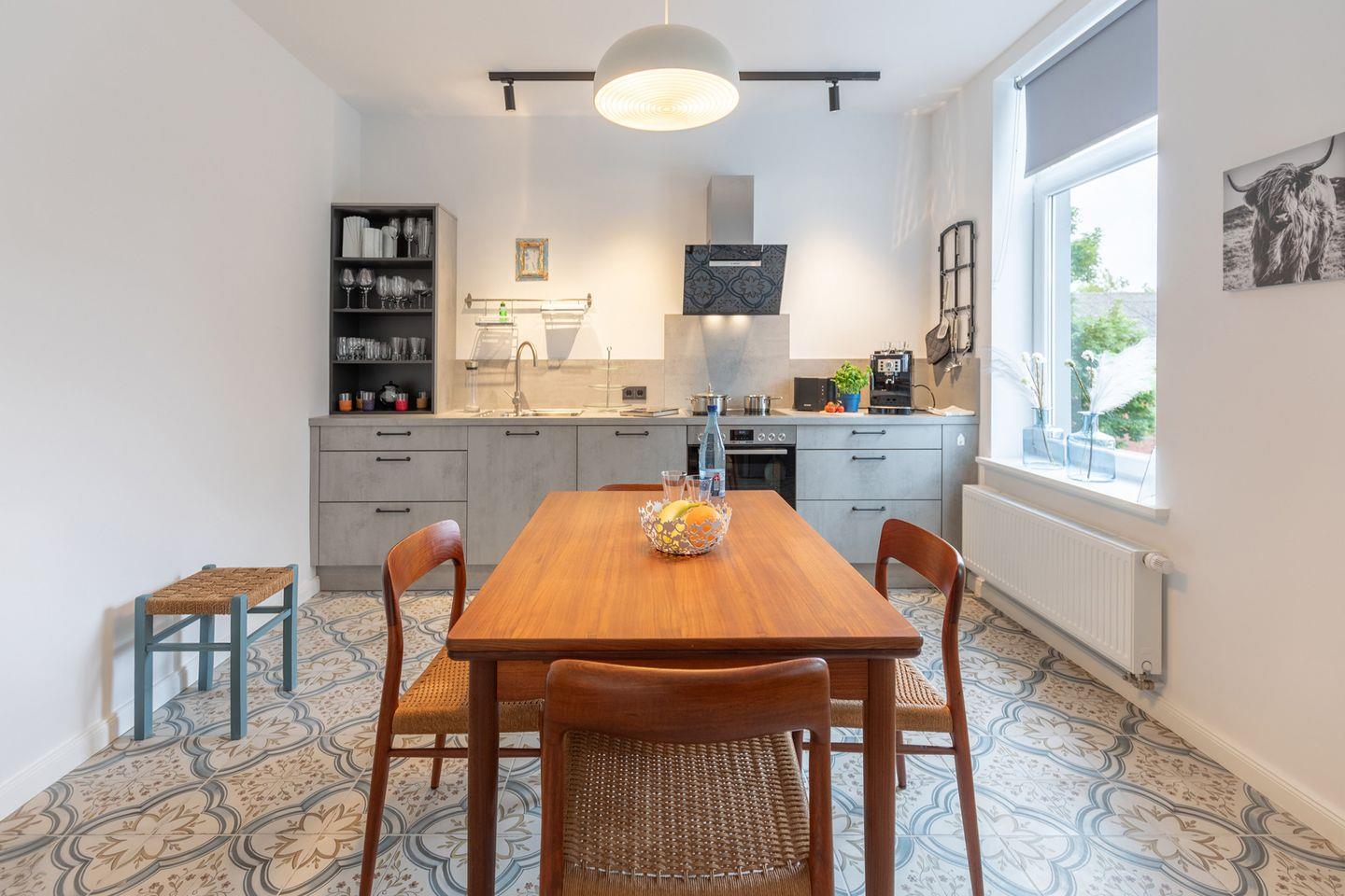 Erleben Sie "Ellis groot Stuuv" in Garding, ein gemütliches 65 qm Apartment für bis zu vier Personen. Genießen Sie ein stilvolles Wohnzimmer, eine voll ausgestattete Küche und ein Schlafzimmer mit Doppelbett. Entspannen Sie auf der Loggia oder im Garten mit Rotbuche und Strandkorb. Die Wohnung bietet kostenloses WLAN, Fahrradgarage und Parkplatz. Nur 15 Minuten von St. Peter-Ording entfernt, perfekt für einen erholsamen Nordseeurlaub. Bettwäsche und Handtücher inklusive.