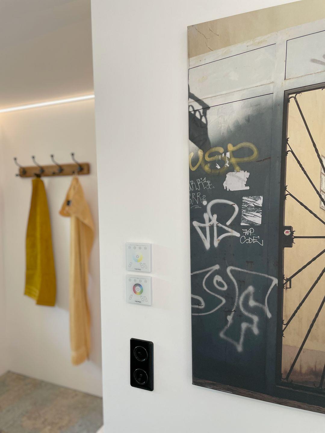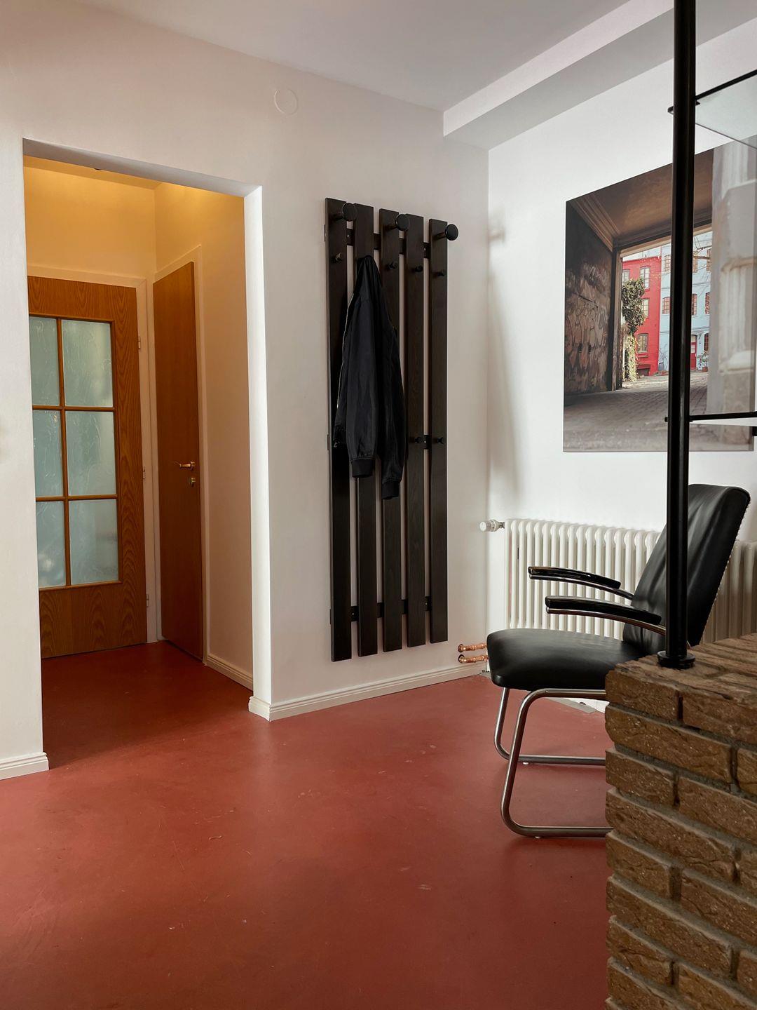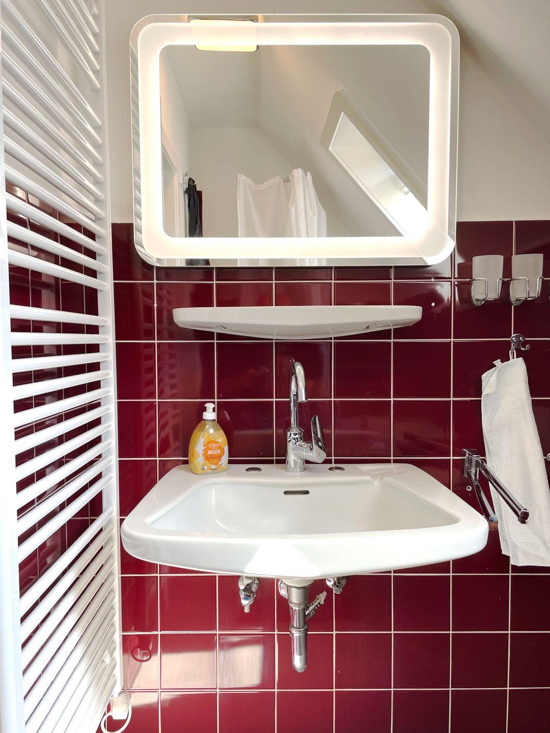 Das Melkmanns ist gut 130qm groß und bietet auf 2 Etagen entspannt Platz für 5 - 6 Gäste. In den 3 unterschiedlich großen Schlafzimmern kann man es sich jederzeit gemütlich machen, wobei im größten Schlafzimmer auch ein Tisch zum Arbeiten – wenn es denn unbedingt sein muss – oder zum Spielen bereitsteht. Das kleinste Schlafzimmer ist mit zwei Einzelbetten ausgestattet. Und sollte man sich zwischendurch mal aufs Ohr hauen wollen, steht im großen Flur auch ein Schlafsofa parat. Im Vollbad kann man nach einem Strandtag nochmal gemütlich in der Wanne abtauchen und im Duschbad unten schnell unter die Brause springen. Ab Herbst entsteht hier auch eine Sauna – stay tuned! Zusätzlich gibt’s auch noch ein praktisches Gäste-WC. Für die kleinen Gäste stehen zwei Reisebetten und zwei Hochstühle bereit.