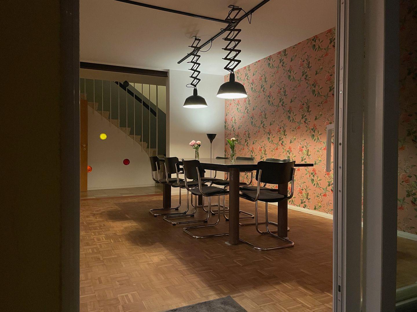 Voll ausgestattet ist der offene Küchen-Essbereich zentraler Ort und vor dem riesigem Fernseher mit Netflix und IP-TV können es sich im 40qm Wohnzimmer wirklich alle zusammen gemütlich machen. Schnelles Internet gibt’s natürlich!
