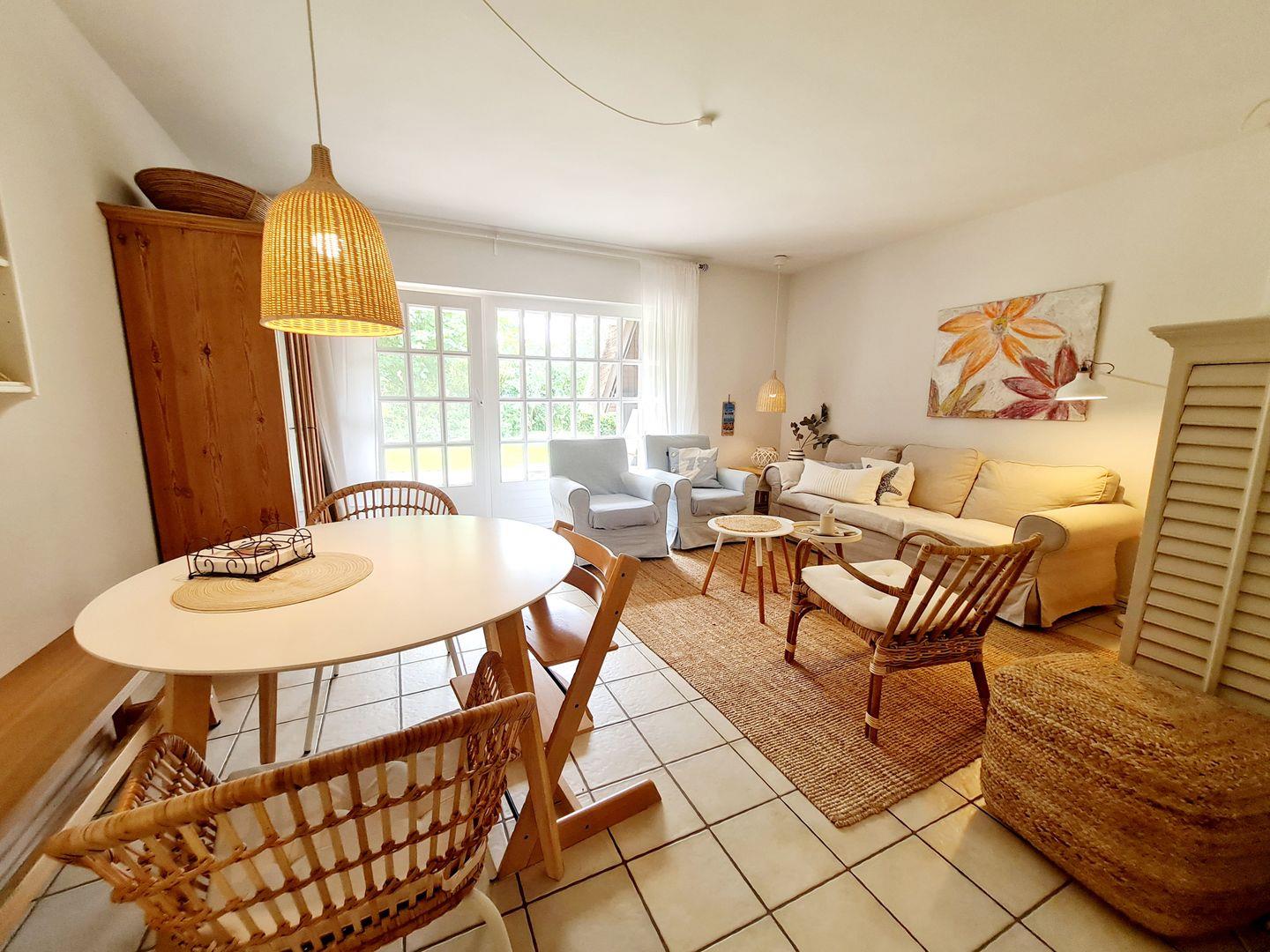 Sie finden alles vor, was zu einem entspannten Urlaub gehört. Es gibt einen großen, gemütlichen Wohnbereich mit schönen Sitzmöbeln und einen LCD Fernseher und natürlich auch WLAN. Die Küche im Landhausstil ist mit allem ausgestattet (Mikrowelle, Geschirrspülmaschine etc.). Im Anschluss daran gibt es einen gemütlichen Essplatz für 4 Personen und 1 Stokke-Tripp-Trapp (inkl. Newborn-Set), so daß Sie sich wie Zuhause fühlen können.