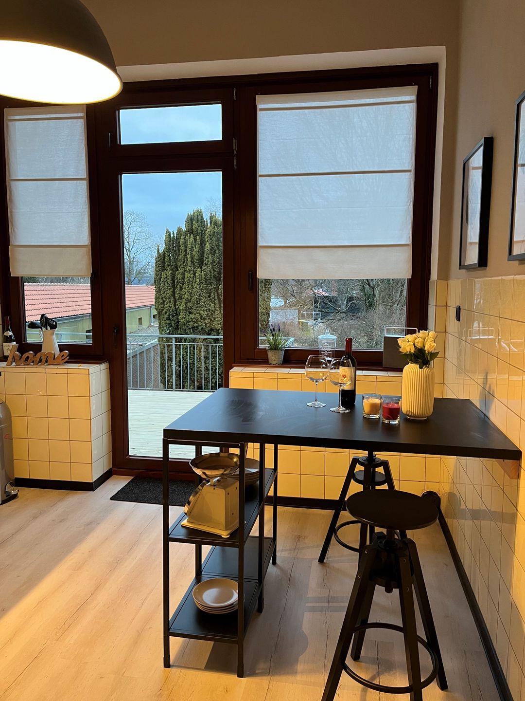 Die 2023 renovierte Unterkunft verbindet wohnliche Details mit praktischer Ausstattung. Im Wohnzimmer mit Parkettboden erwarten Sie eine Sofaecke, ein Sofa, TV mit digitalen internationalen Kanälen, Radio, HiFi-Anlage sowie Bücher. Ein Essbereich mit Esstisch ergänzt die gemeinschaftlich nutzbaren Räume. In den Schlafzimmern sorgen Dielenböden für eine angenehme Atmosphäre. Zusätzlich stehen unter anderem Garderobe, Kommode, Schuhschrank und ein Schreibtisch zur Verfügung.