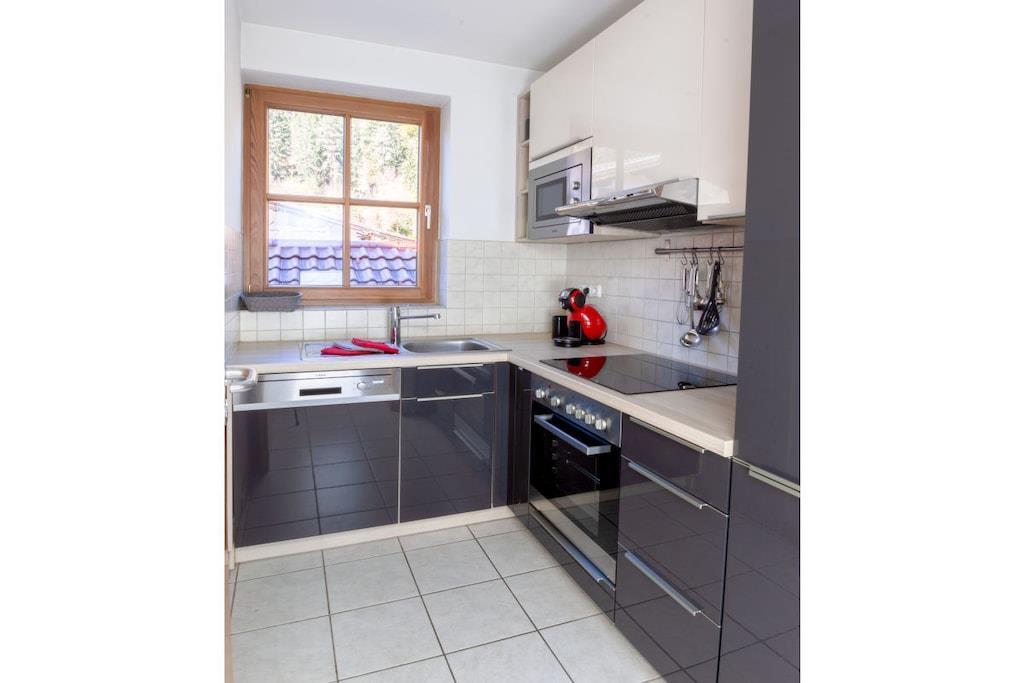 Behagliche und großzügige Ferienwohnung, auf einer Größe von ca. 90qm, in Garmisch-Partenkirchen mit 2 Schlafzimmern, ideal für 4- 5 Urlauber. Es gibt 2 Bäder/ Duschen mit Toiletten. Die Küche ist mit einem Kühl-Gefrierschrank, einem 4-Ceranfeldherd mit Backofen und Mikrowelle, sowie eine Spülmaschine ausgestattet. Im Wohnzimmer steht ein Schlafsofa. Sat-TV und Wlan-Ausstattung stehen ebenfalls zur Verfügung. 2 separate Balkone, u.a. mit Blick auf die Zugspitze und Kramer.
