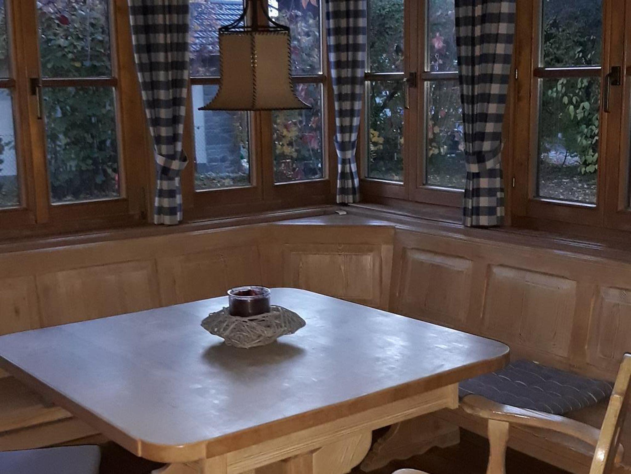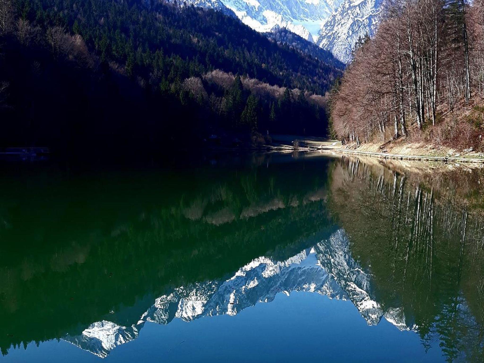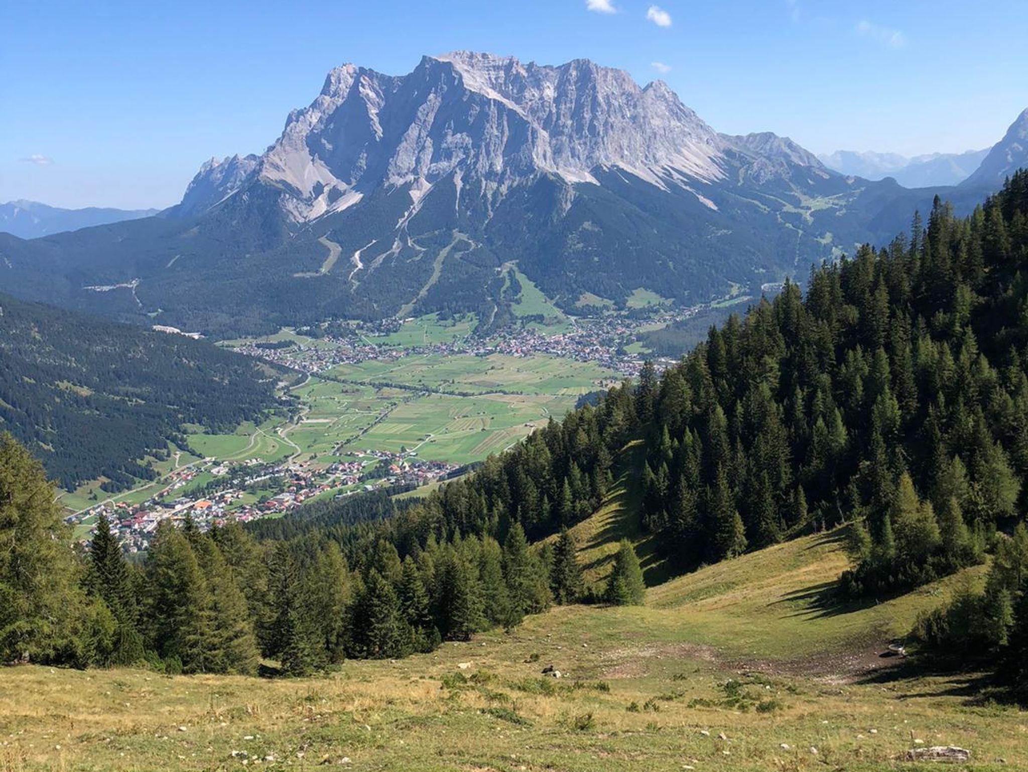 Das Haus ist von einem Garten umgeben. Von Terrasse und Garten können Sie den wunderschönen Blick auf die Alpspitze genießen. Gartenmöbel stehen zur Verfügung.
