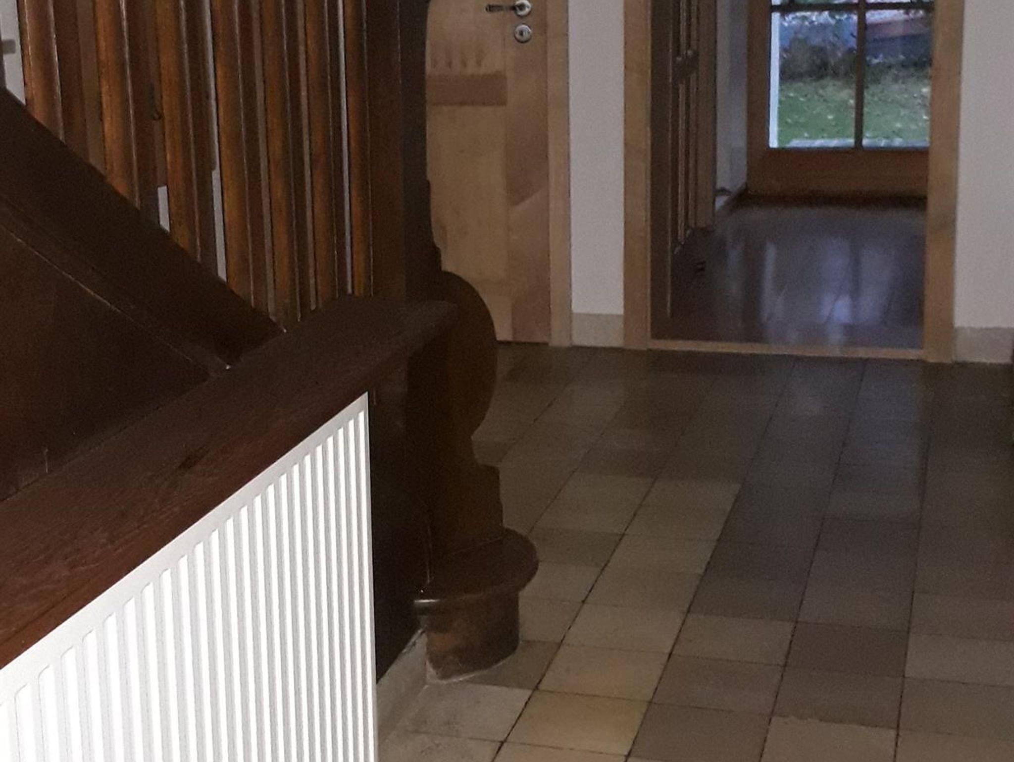 In der Wohnung ist ausschließlich Holz- und Fliesenboden verlegt.