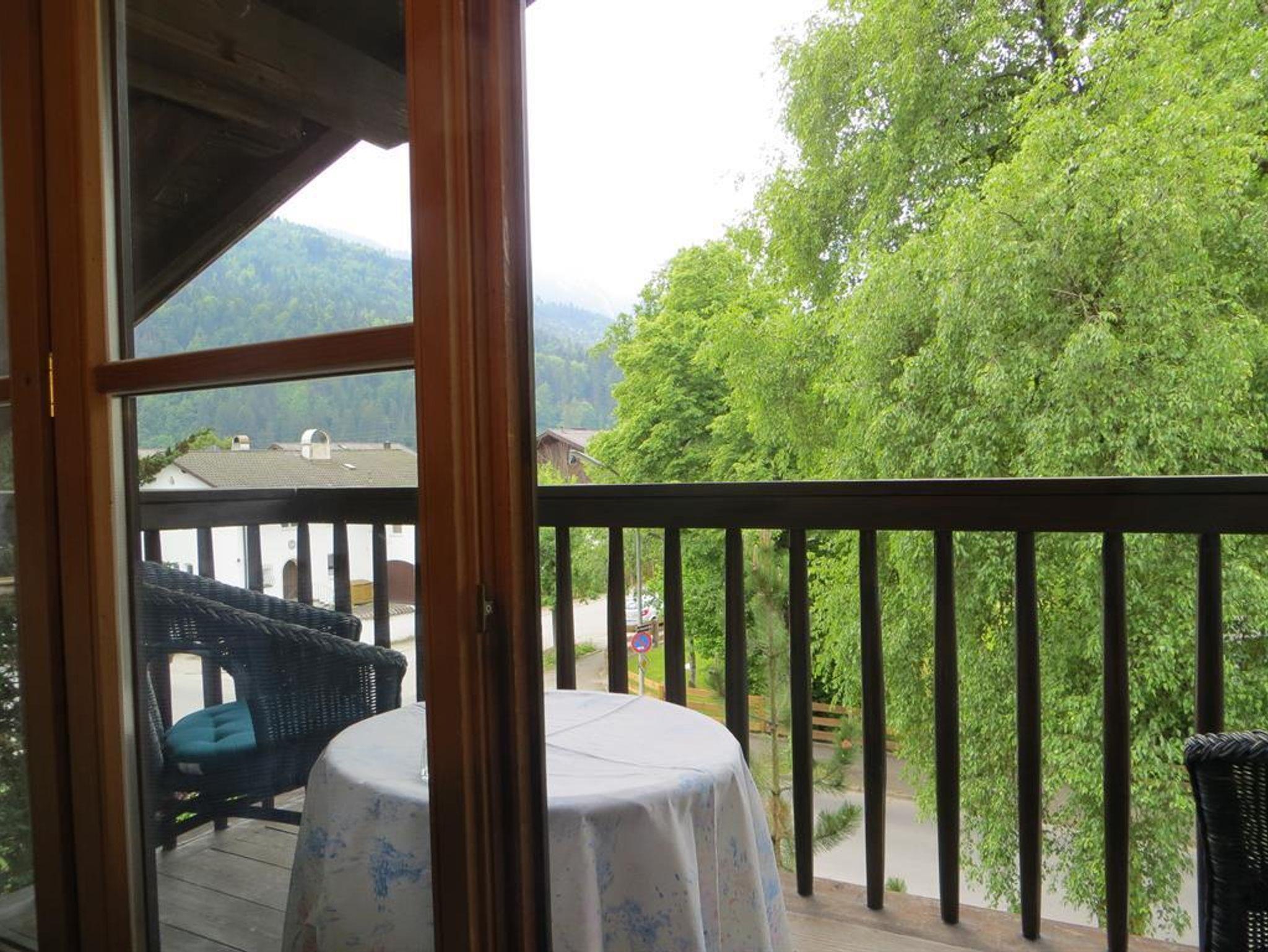 Genießen Sie den Blick auf das herrliche Gebirgspanorama von Garmisch-Partenkirchen von Ihrem Balkon aus oder bei einer gemütlichen Tasse Kaffee auf der Terrasse.