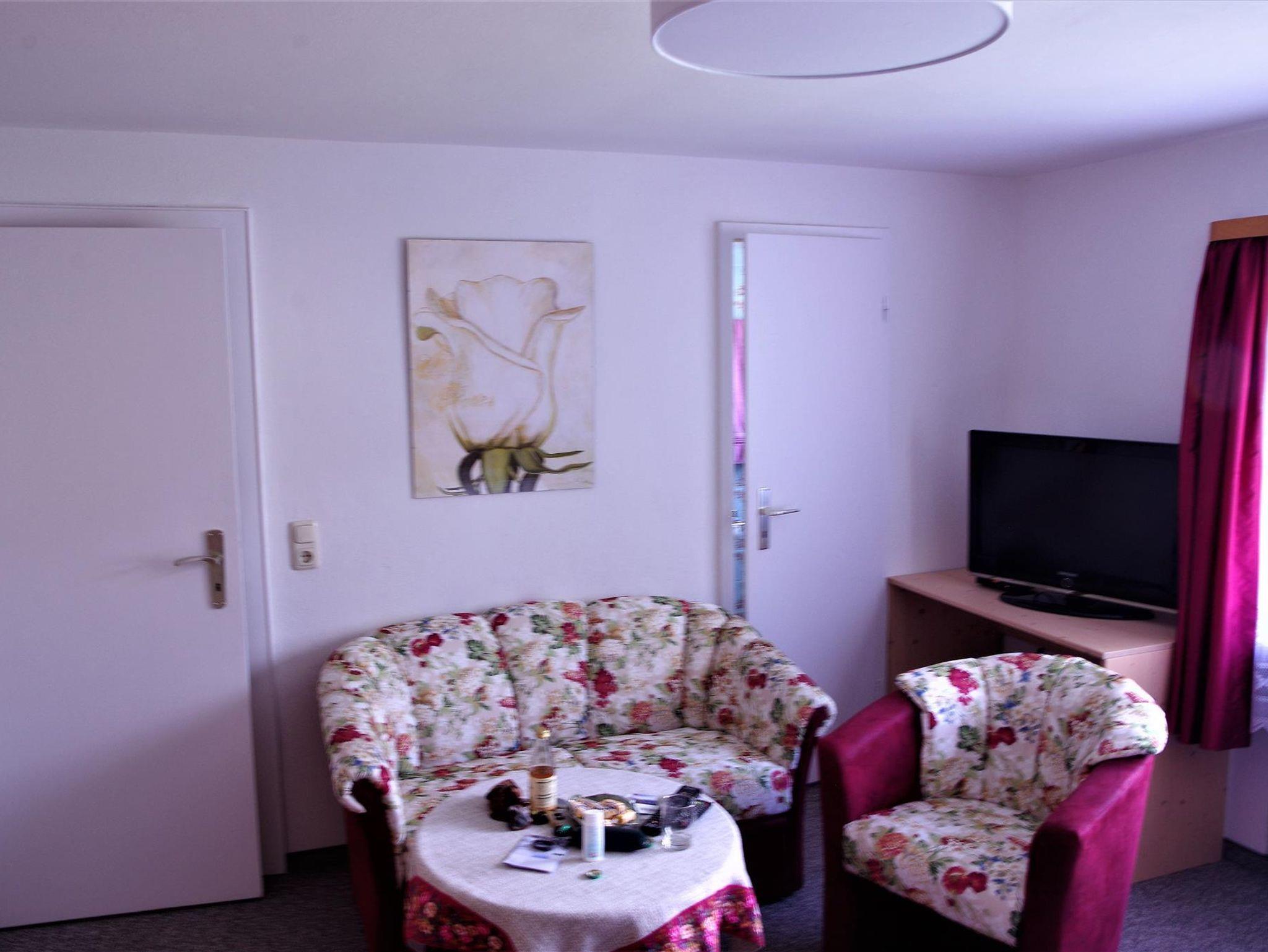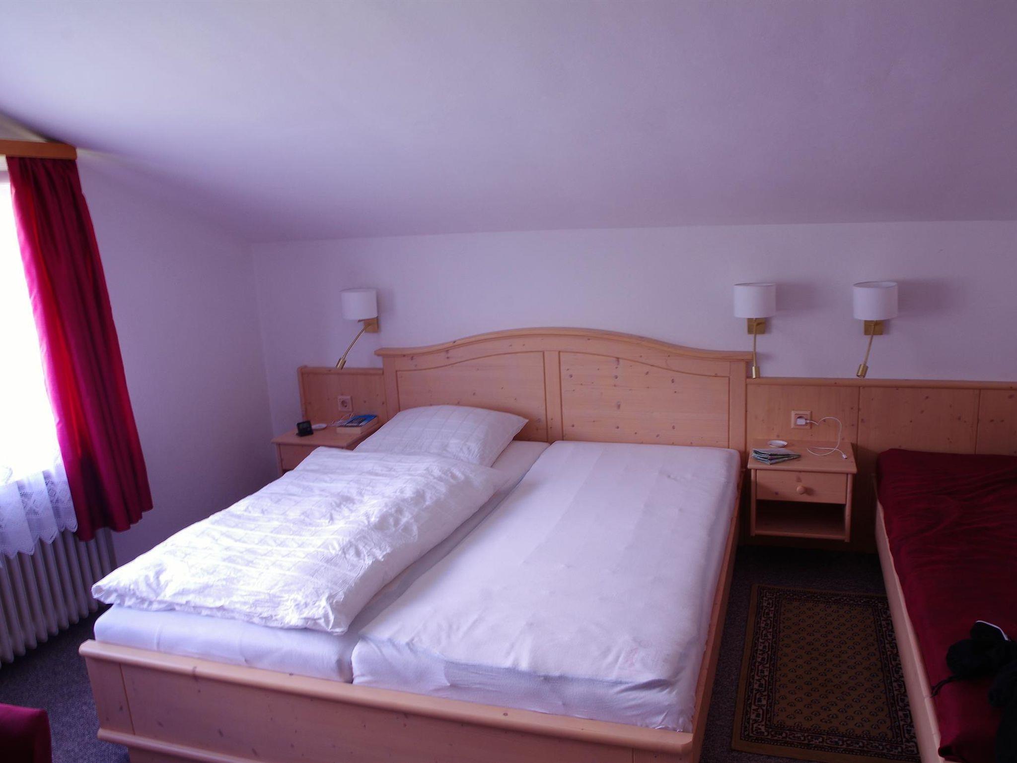 Doppelzimmer mit Dusche/WC, Dreibettzimmer auch als Doppelzimmer möglich. Alle Gästezimmer mit Frühstück bzw. die Ferienwohnungen ohne Frühstück. Parkplätze am Haus.