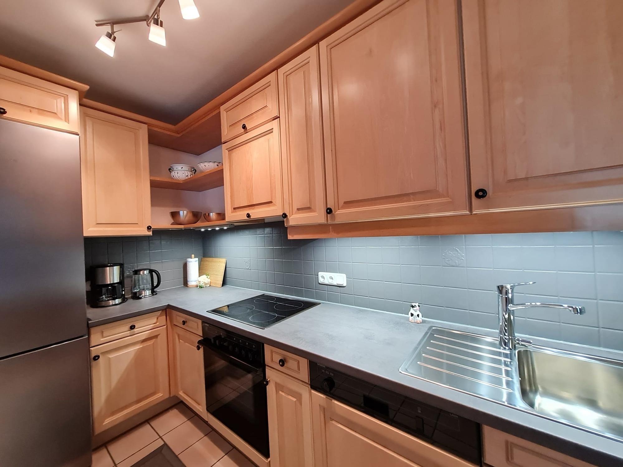 Wir Bayern wissen: Die frische Bergluft erzeugt neben allgemeinem Wohlbefinden vor allem auch eines - richtig Hunger. Daher bietet "Hansi`s Bergblick" eine komplett ausgestattete moderne Küche, die nach einem kalorienzehrenden Wandertag alles nötige vorhält um die um die gemütliche bayerische Eckbank versammelten hungrigen Mäuler schnellstens mit leckeren Speisen zu versorgen.