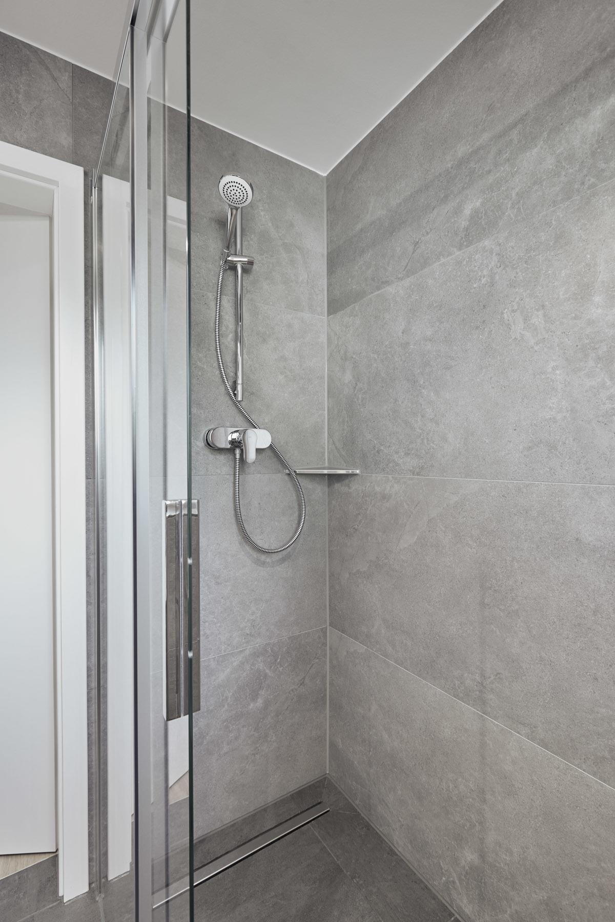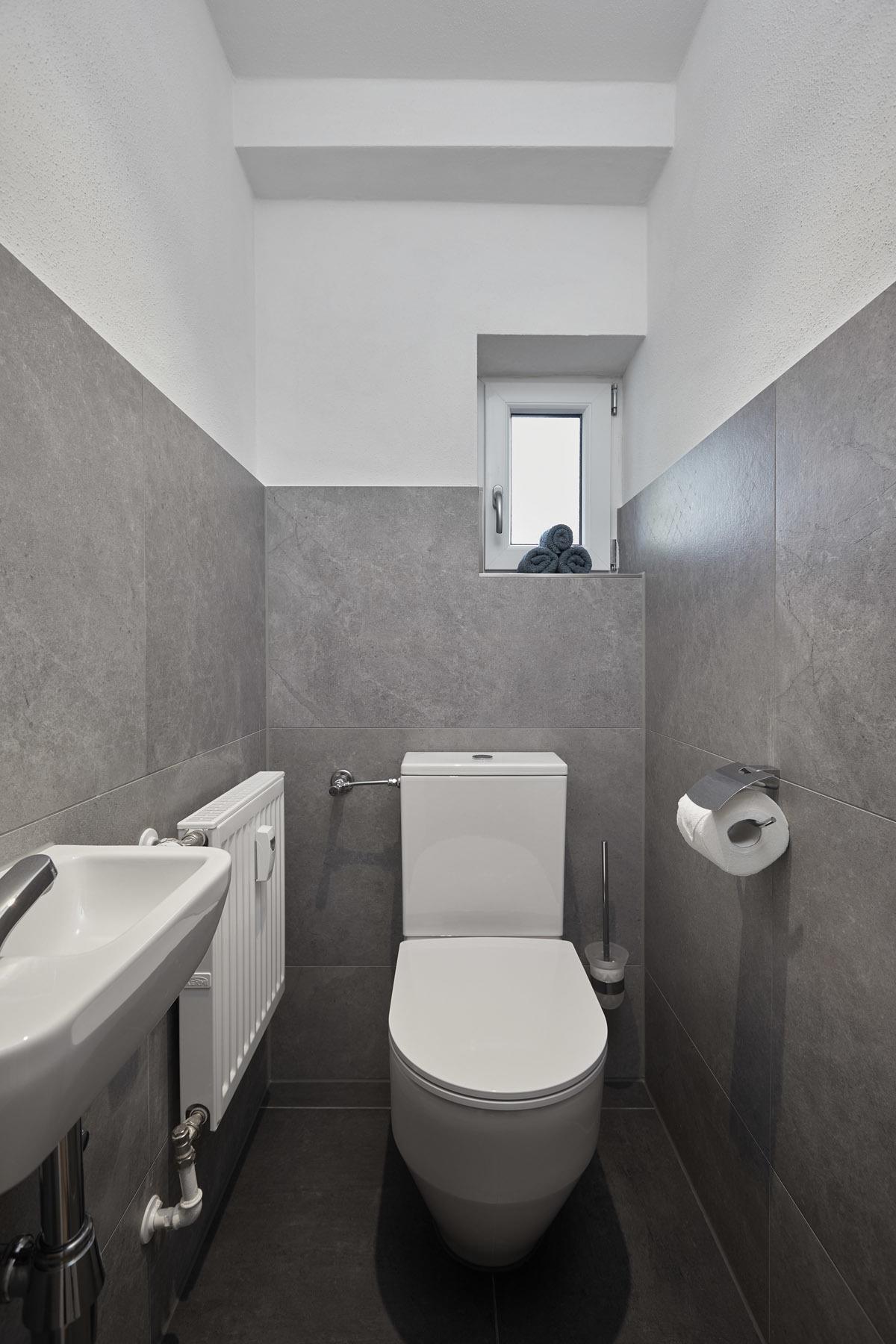 Das Badezimmer und die Toilette sind getrennt, und das Badezimmer bietet eine bodengleiche Dusche. Handtücher, Handseife und Toilettenpapier werden gestellt.