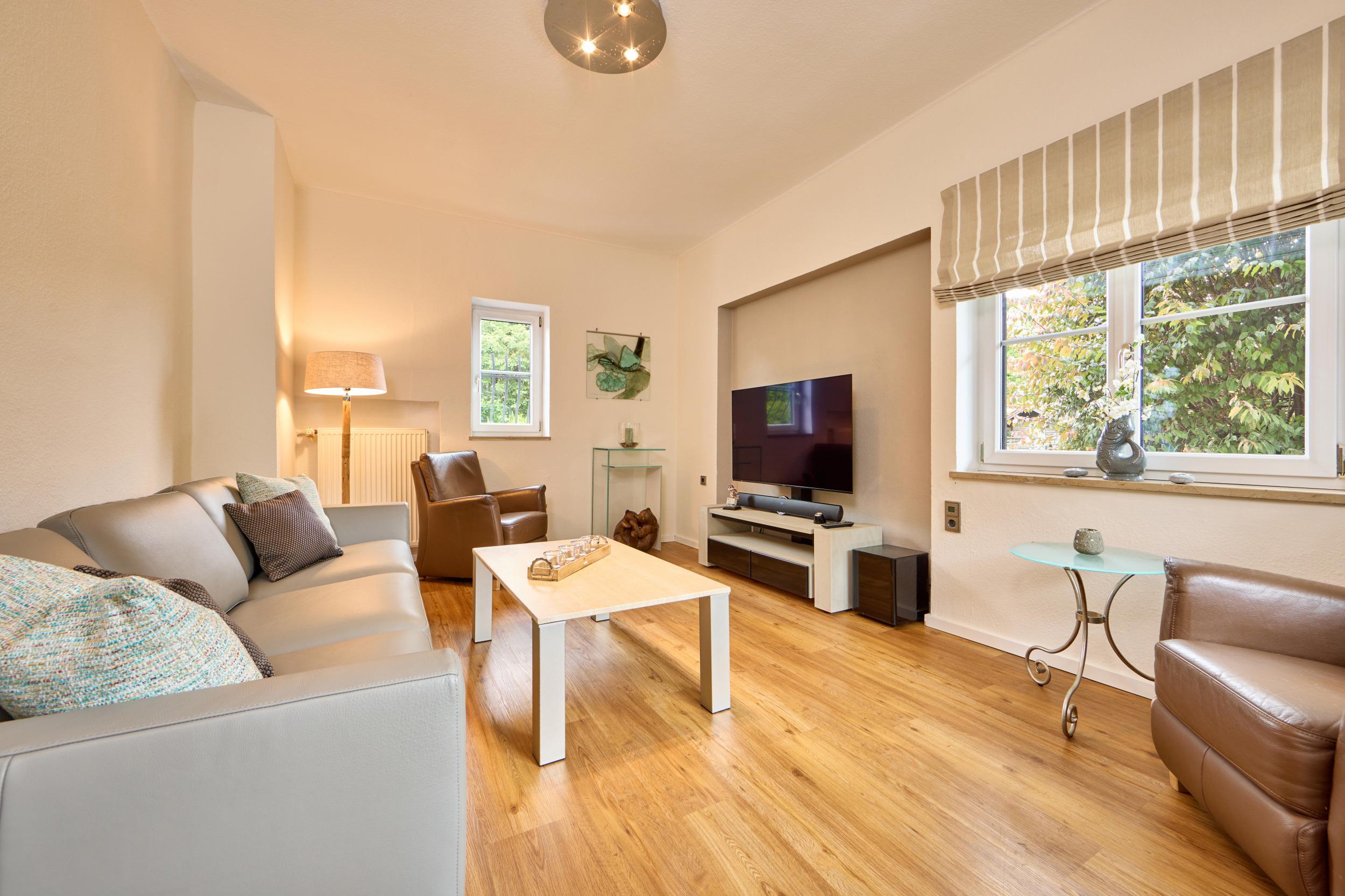 - Wohnzimmer mit 58-Zoll-TV