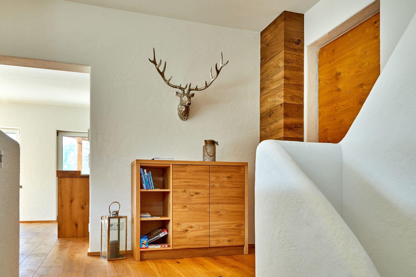 Durch die Wohnraumlüftungen entsteht auch bei sommerlichen Temperaturen im ganzen Haus ein angenehmes Raumklima, während die Fußbodenheizung an kalten Tagen für kuschlige Wärme sorgt.