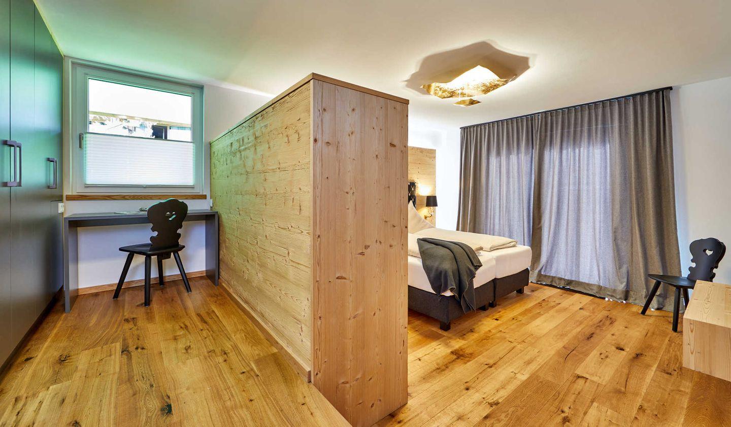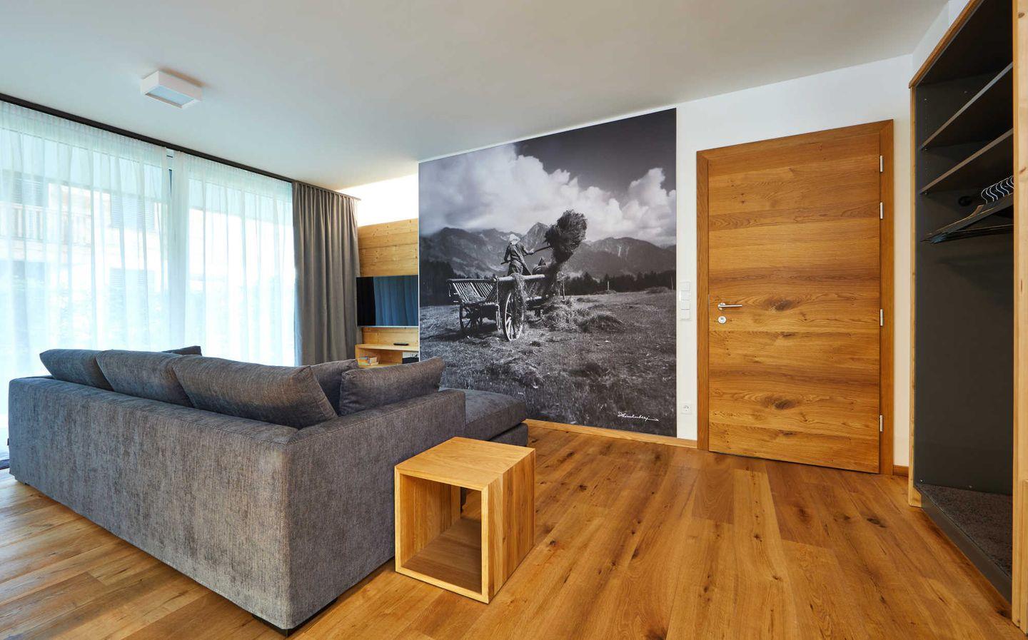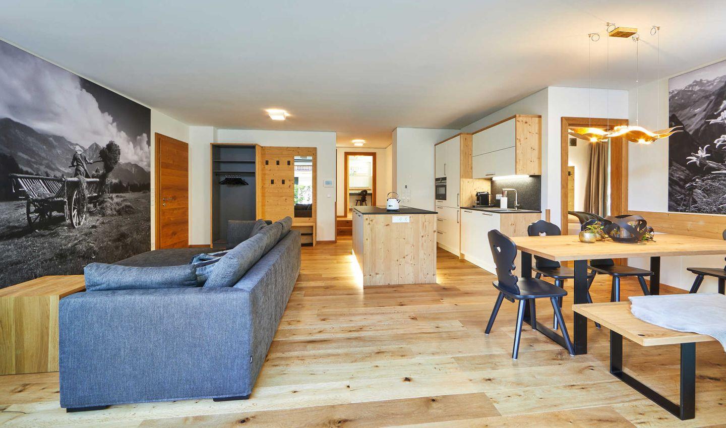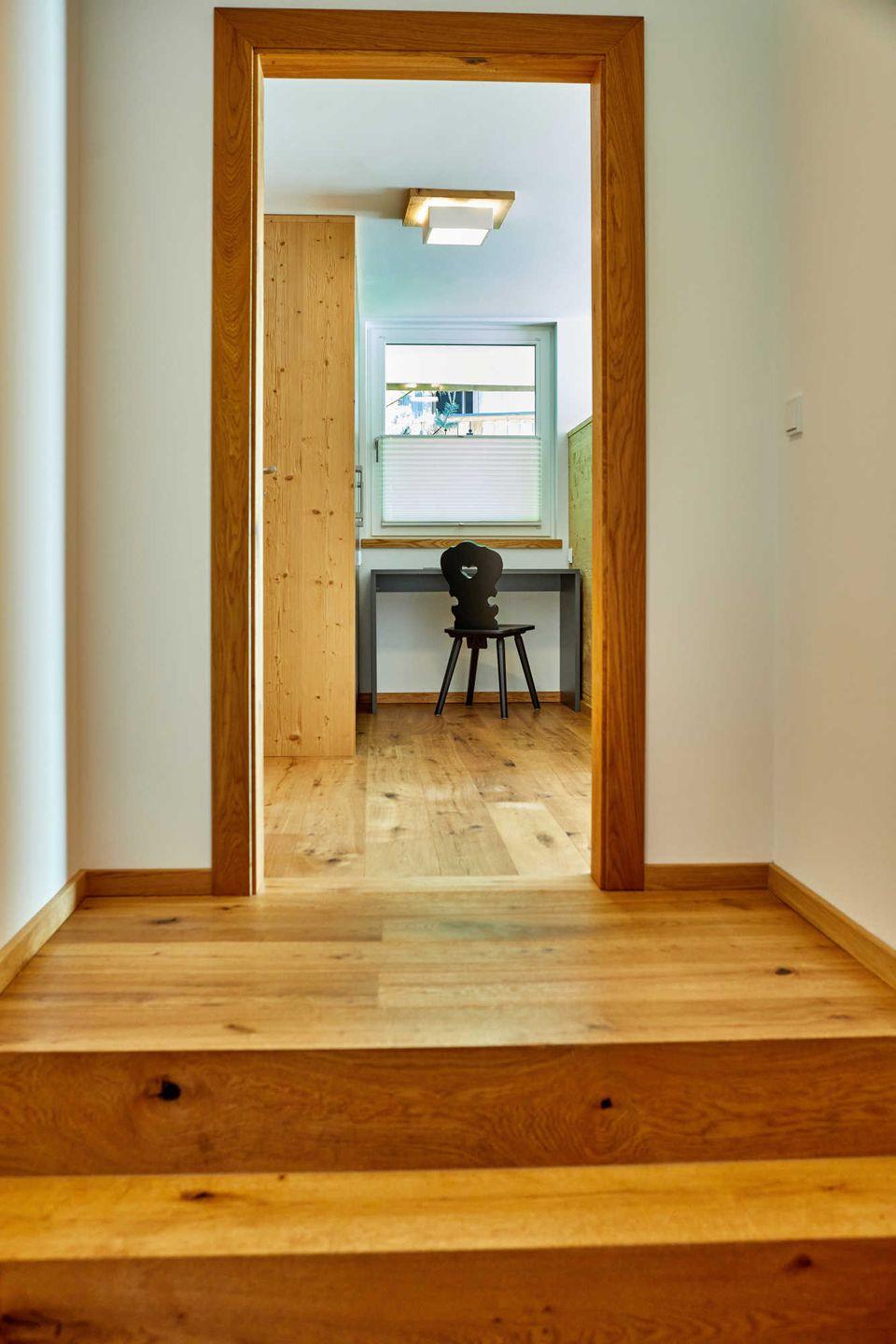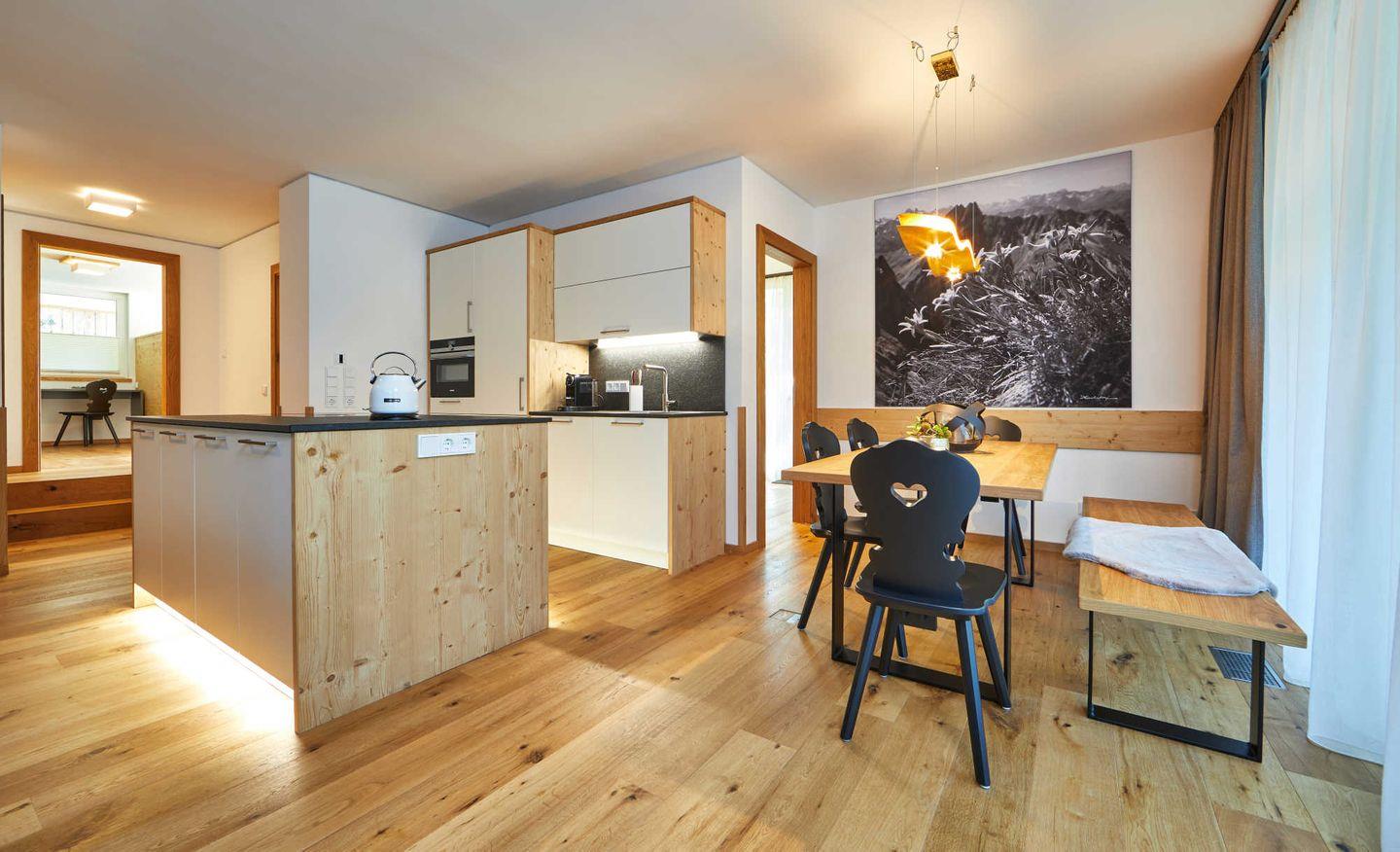 Für größere Gruppen kann die Wohnung mit dem darüber liegenden „Parkchalet" kombiniert und so ausreichend Platz für 7 Personen geschaffen werden.