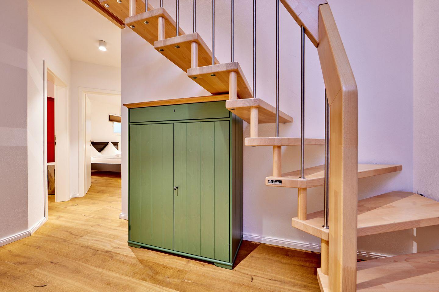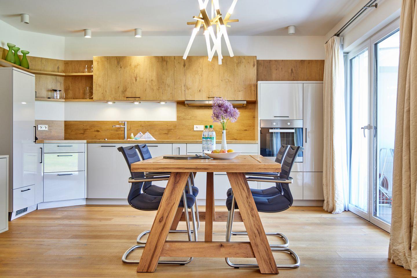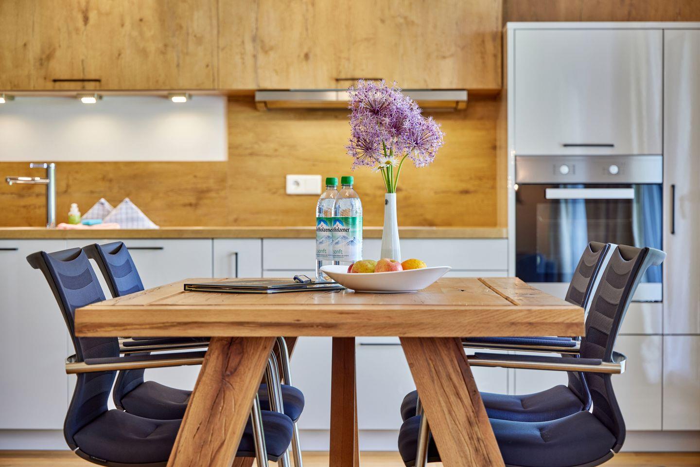Ein Flachbildfernseher sorgt für die Unterhaltung am Abend und an dem massiven Esstisch aus warmem Holz haben bis zu 4 Personen Platz. Die Räumlichkeiten im Erdgeschoss sind mit elektrischen Rollläden versehen. Die Fußbodenheizung in der gesamten Wohnung lässt kalte Füße nicht zu!