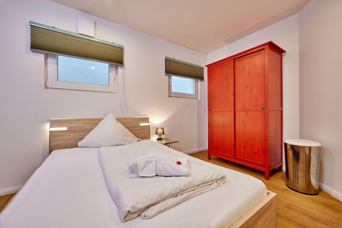 Zwei Schlafzimmer mit bequemen Betten und Verstaumöglichkeiten für Ihre Kleidung, sowie das moderne Badezimmer mit Eckbadewanne und separater Dusche bieten Raum für bis zu 3 Personen. Ein Handtuchtrockner so wie ein Föhn sind natürlich vorhanden.