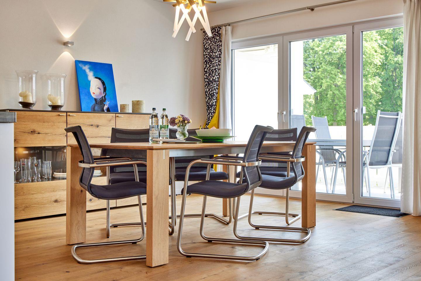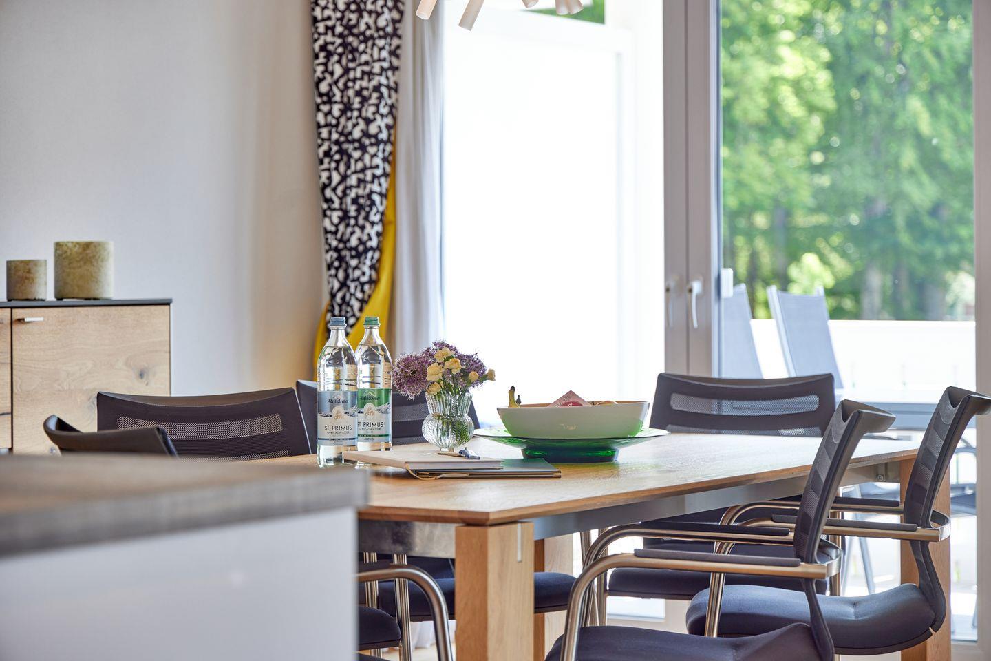 Nehmen Sie anschließend an dem großen Esstisch Platz. Hier finden alle Reisemitglieder Platz!