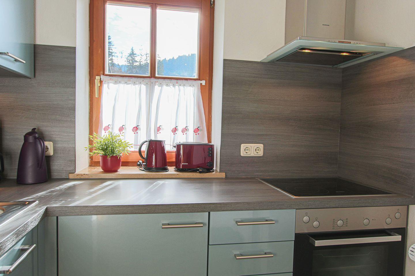 Ihre Kochkünste dürfen Sie gerne in der modernen Küche unter Beweis stellen. Sie ist vollständig eingerichtet und es wird Ihnen hier an nichts fehlen! Ein Fenster sorgt für ausreichend Tageslicht und den nötigen Durchblick am Herd.