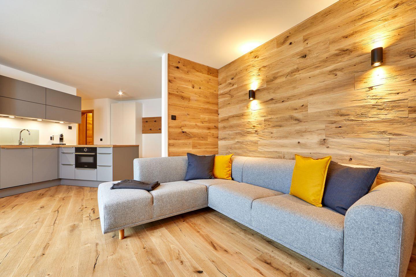 Sie öffnen die Eingangstür und ein großzügiger, offener Wohn-Essbereich im modernen Alpenstil empfängt Sie. Legen Sie die Füße hoch auf der bequemen Sofalandschaft, umrahmt von modernem Altholz. Mit Soundbar und Smart-TV ausgestattet - so verzichten Sie auch im Urlaub nicht auf Ihren Standard.