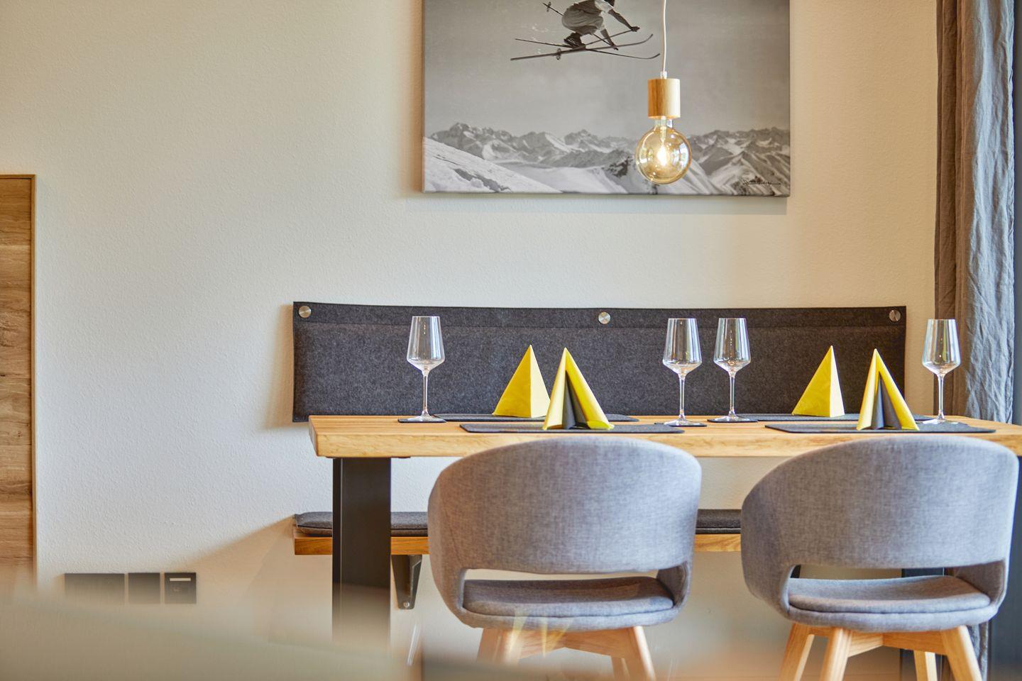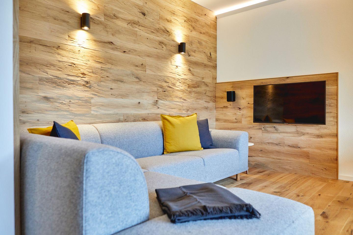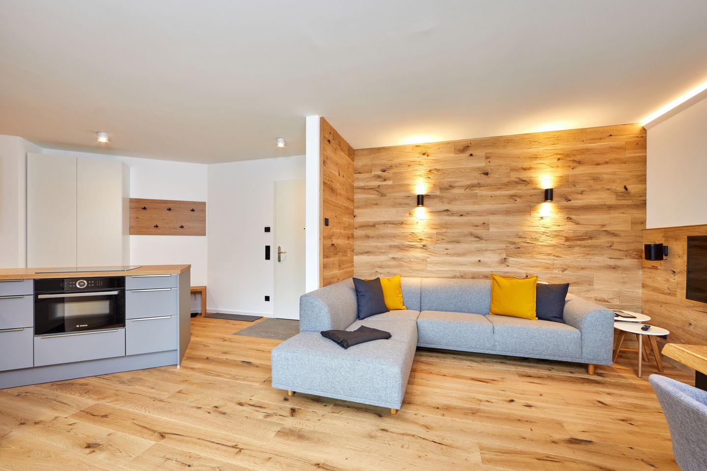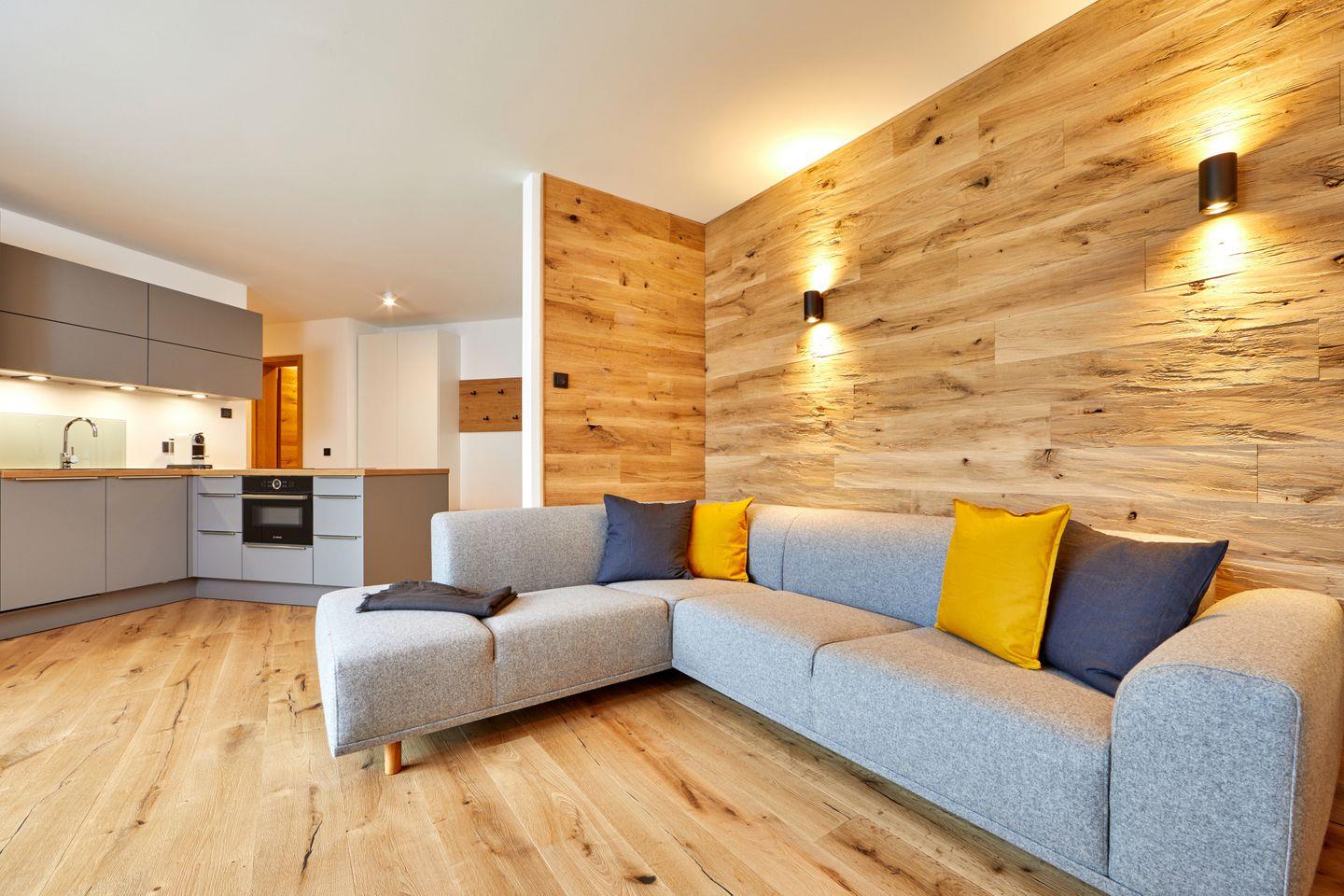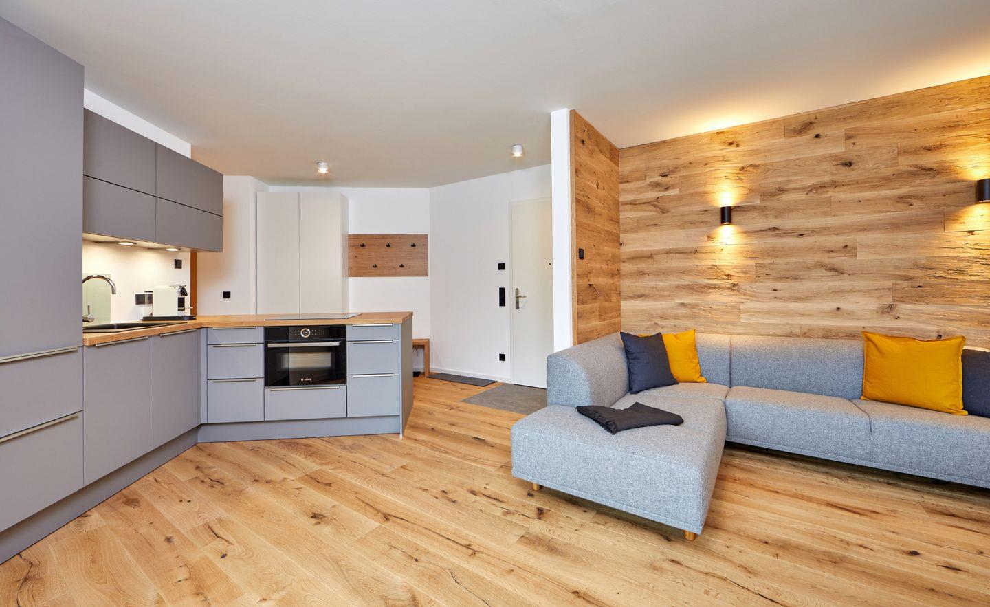 Sie öffnen die Eingangstür und ein großzügiger, offener Wohn-Essbereich im modernen Alpenstil empfängt Sie. Legen Sie die Füße hoch auf der bequemen Sofalandschaft, umrahmt von modernem Altholz. Mit Soundbar und Smart-TV ausgestattet - so verzichten Sie auch im Urlaub nicht auf Ihren gewohnten Luxus.