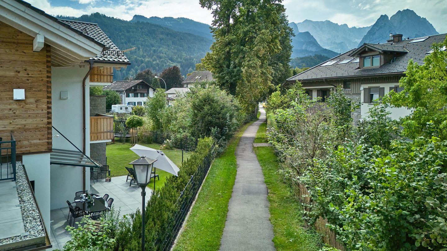 In zentraler und doch geschützter, ruhiger Lage bietet diese Neubauwohnung bis zu 8 Urlaubshungrigen eine zauberhafte Unterkunft mit dem Feeling eines ganzen Hauses. 4 Schlafzimmer und 3 Bäder halten auf 3 Etagen ausreichend Platz für die ganze Familie bereit. In nur ca. 5 Gehminuten erreichen Sie von hier nicht nur die belebte Garmischer Fußgängerzone, sondern auch die Hausbergbahn, die Sie für kurze oder lange Abstecher direkt in die Werdenfelser Bergwelt bringt.