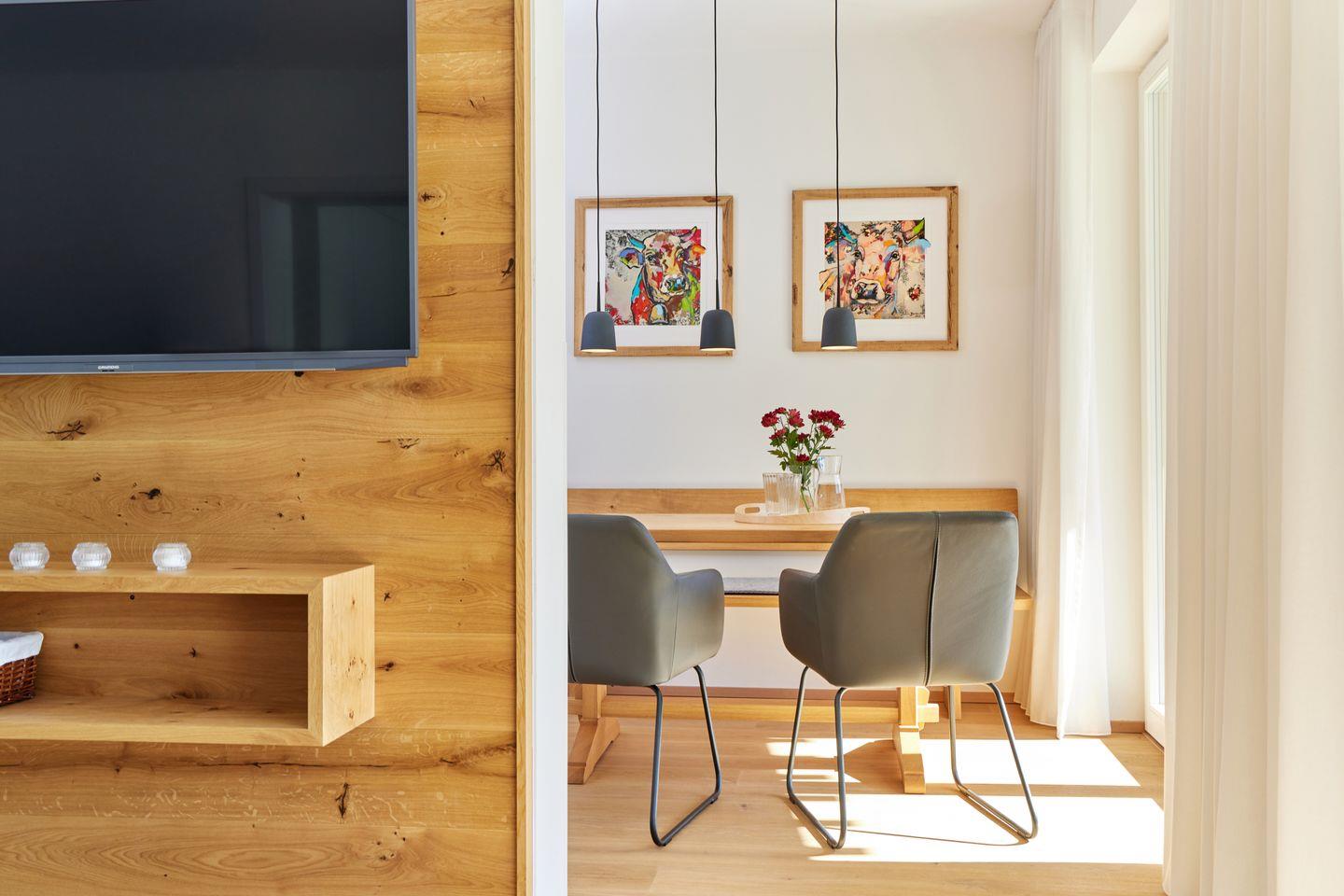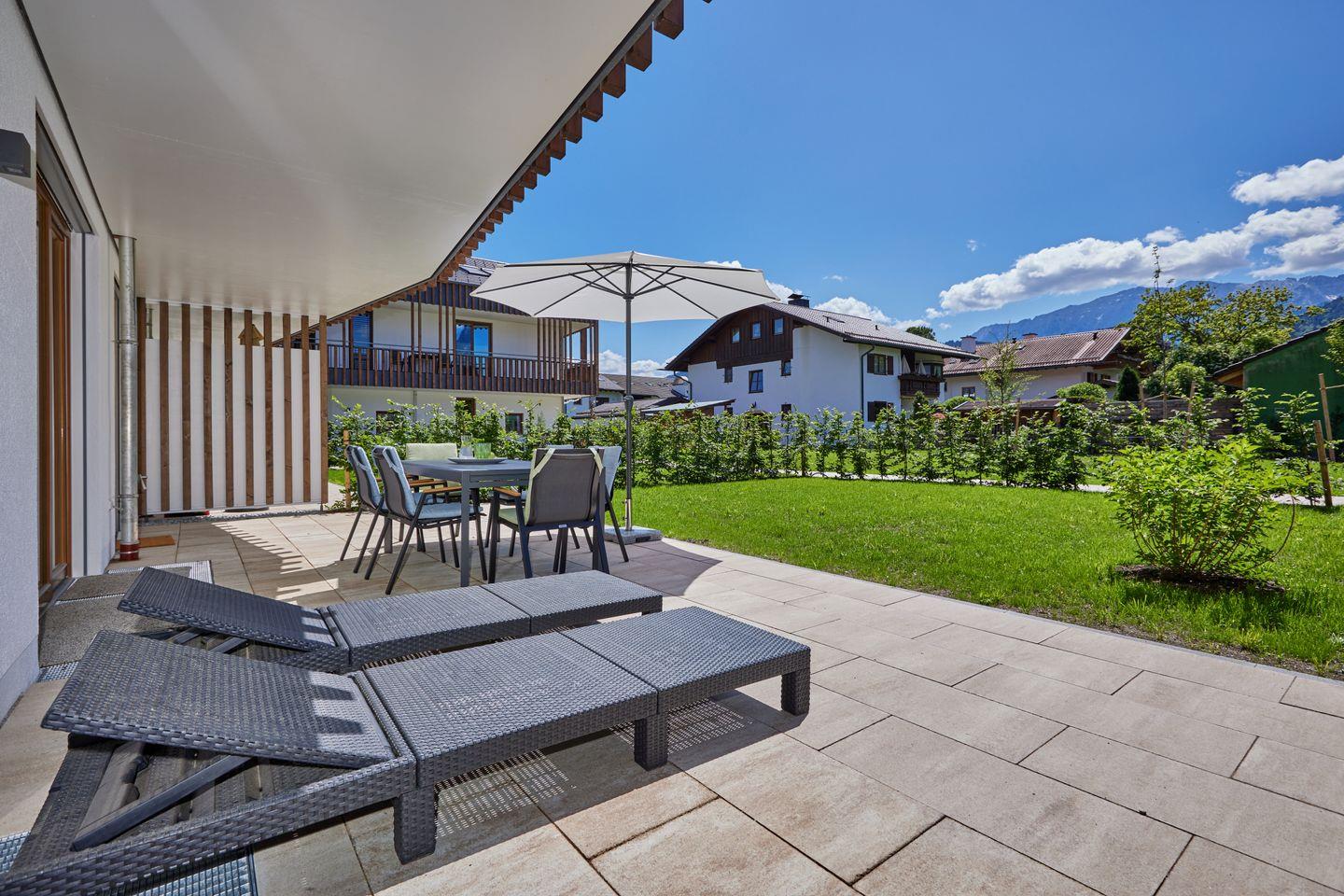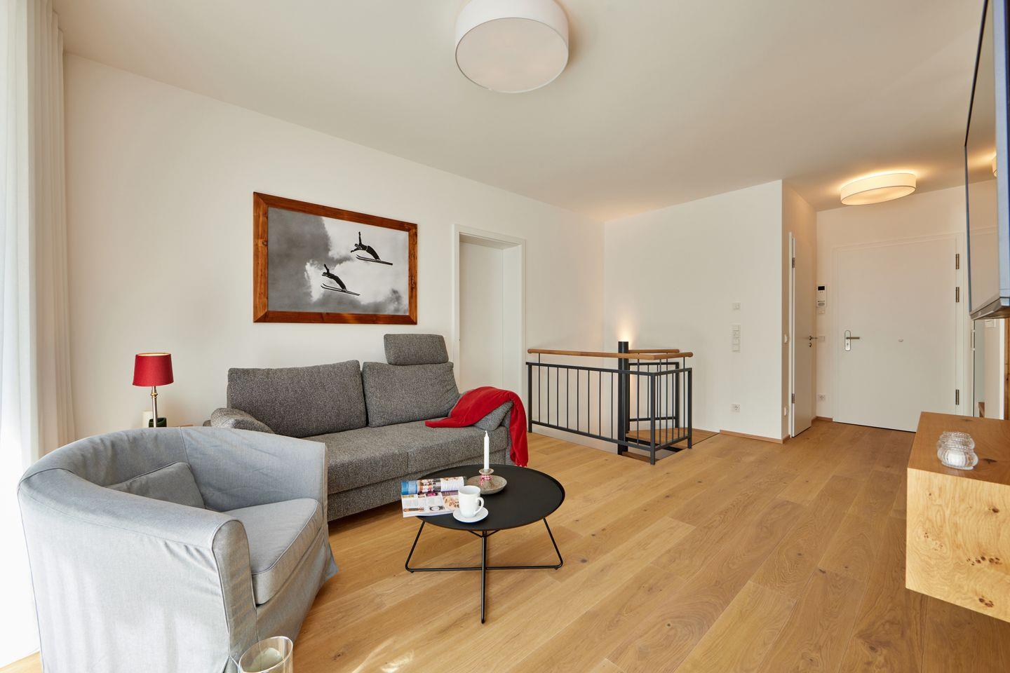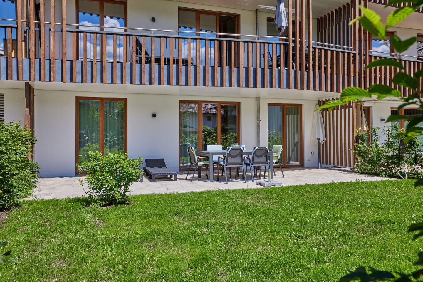 In wunderbar zentraler und trotzdem ruhiger Lage bietet diese Erdgeschosswohnung mit 2 Schlafzimmern genug Platz für bis zu 4 Personen. Mit minimalistischer, hochwertiger Ausstattung, in Kombination mit hellen Räumen und warmen Holzelementen, wartet diese Wohnung nur darauf, Ihnen einen unvergesslichen Aufenthalt zu bereiten. Die Ferienwohnung bietet mit einer großen, möblierten Terrasse zudem die Möglichkeit, viel frische Bergluft einzuatmen oder ausgiebig Sonne zu tanken.