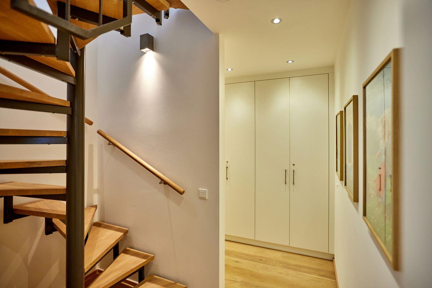 Über eine Wendeltreppe gelangen Sie ins Untergeschoss, wo Sie neben dem 2. Schlafzimmer mit Doppelbett noch ein weiteres Bad mit Dusche erwartet. Eine 2. Eingangstüre verschafft Ihnen hier einfachen Zugang zum Keller und zur Tiefgarage.