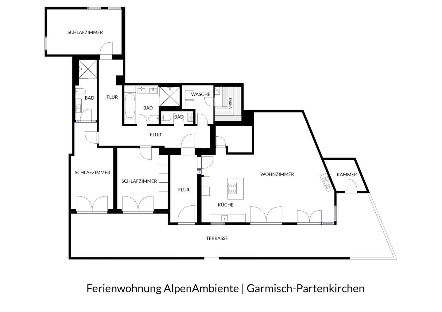 Ruhig in der Nähe der Partenkirchner Fußgängerzone gelegen, bietet diese Wohnung einen zentralen Ausgangspunkt für kurze und lange Abstecher in den Ort mit seinen Restaurants und Einkaufsmöglichkeiten. Auf ca. 170 qm hält sie mit 3 Schlafzimmern und 2 Bädern ausreichend Platz für bis zu 8 Personen bereit. Die Wohnung wurde 2022 renoviert und im modernen Alpenstil neu eingerichtet.