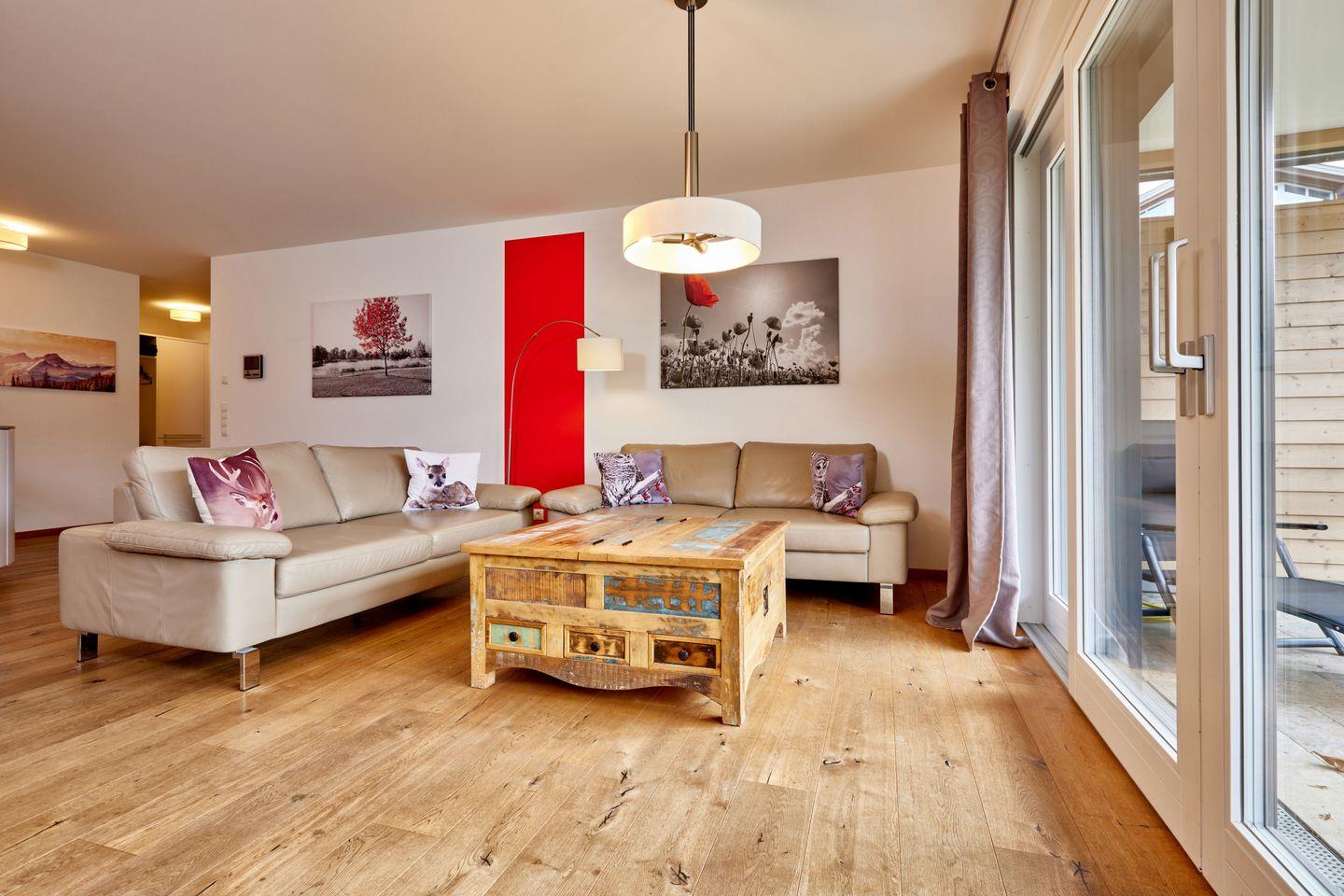 Diese stilvolle Ferienwohnung bietet bis zu 4 Personen nicht nur einen hervorragenden Blick auf die umliegenden Gipfel, sondern auch den Komfort von zwei Schlafzimmern mit kuscheligen Doppelbetten, die für erholsame Nächte sorgen. Ein geräumiger Wohn- und Essbereich ist der ideale Ort, um sich nach einem aufregenden Tag in den Bergen zu entspannen. Die offene Küchenzeile ist mit allen Notwendigkeiten ausgestattet und ermöglicht es Ihnen, kulinarische Köstlichkeiten zuzubereiten und sie am einladenden Essbereich zu genießen.