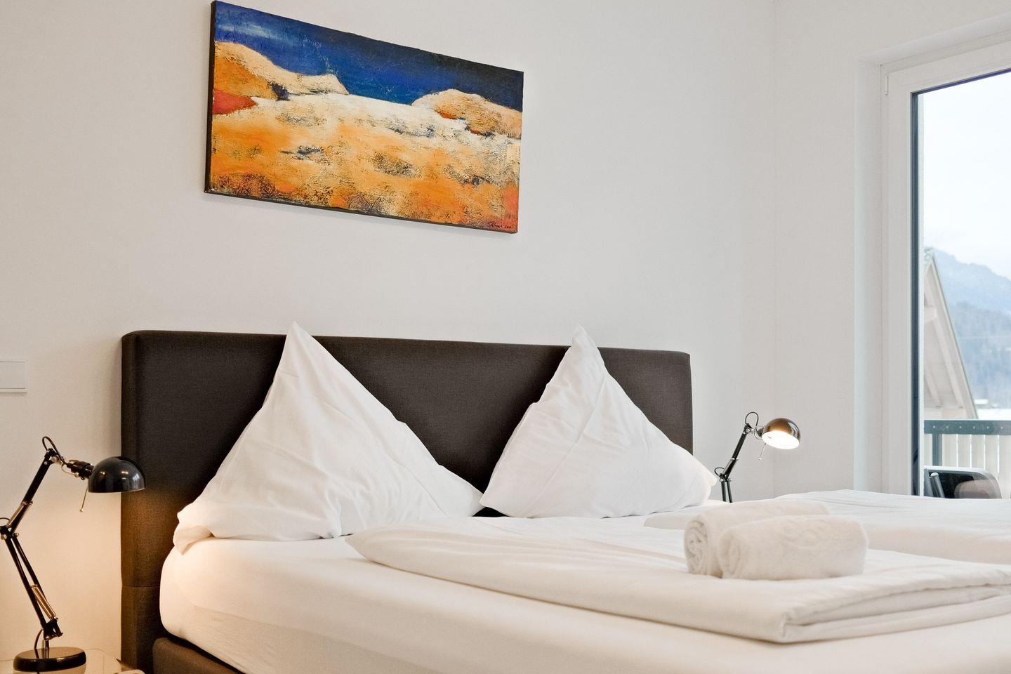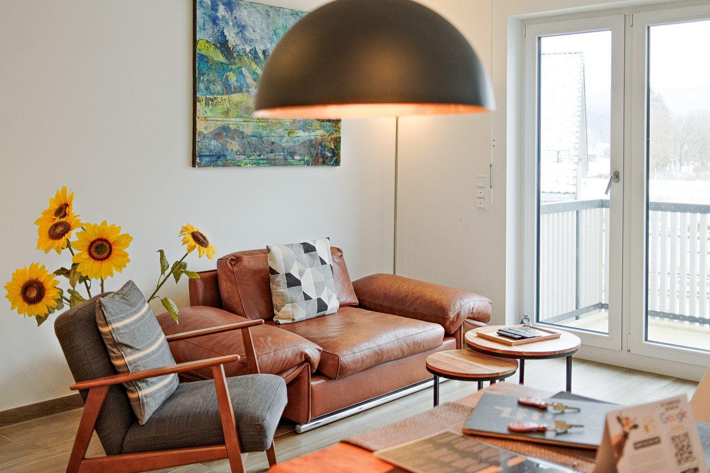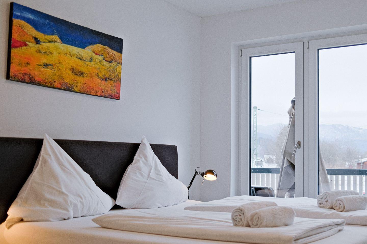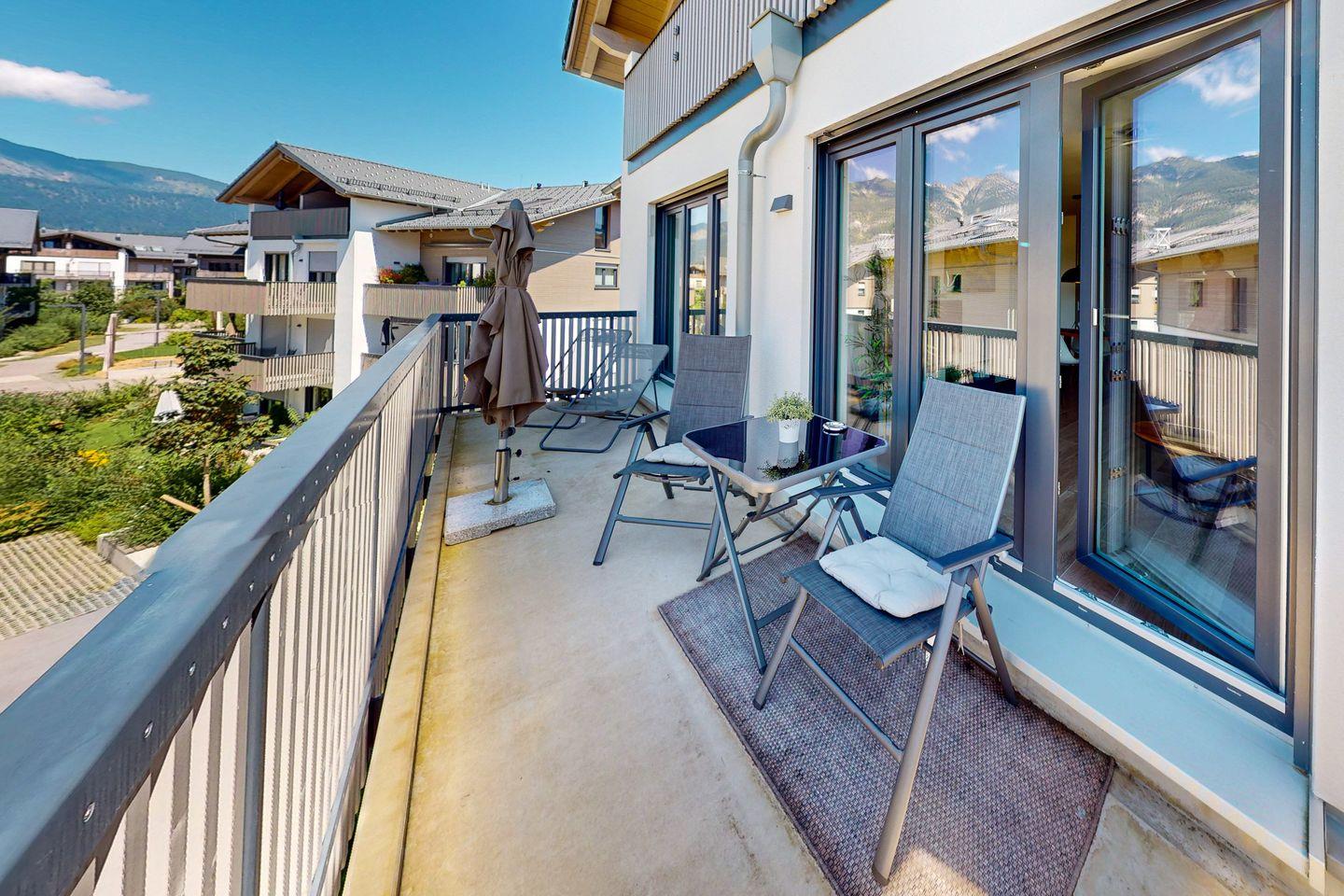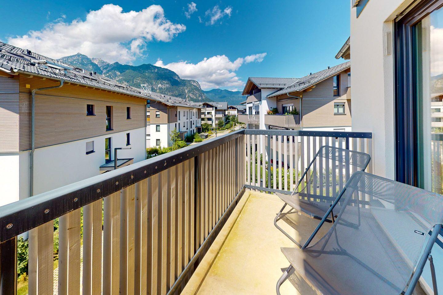 Genießen Sie vom nach Westen ausgerichteten Balkon aus einen atemberaubenden Blick auf die majestätischen Berge – ein Anblick, der Sie Tag für Tag verzaubern wird. Aufgrund der perfekt angebundenen und zentralen Lage erreichen Sie alle wichtigen Örtlichkeiten auch fußläufig und können entspannt mit dem Zug anreisen.