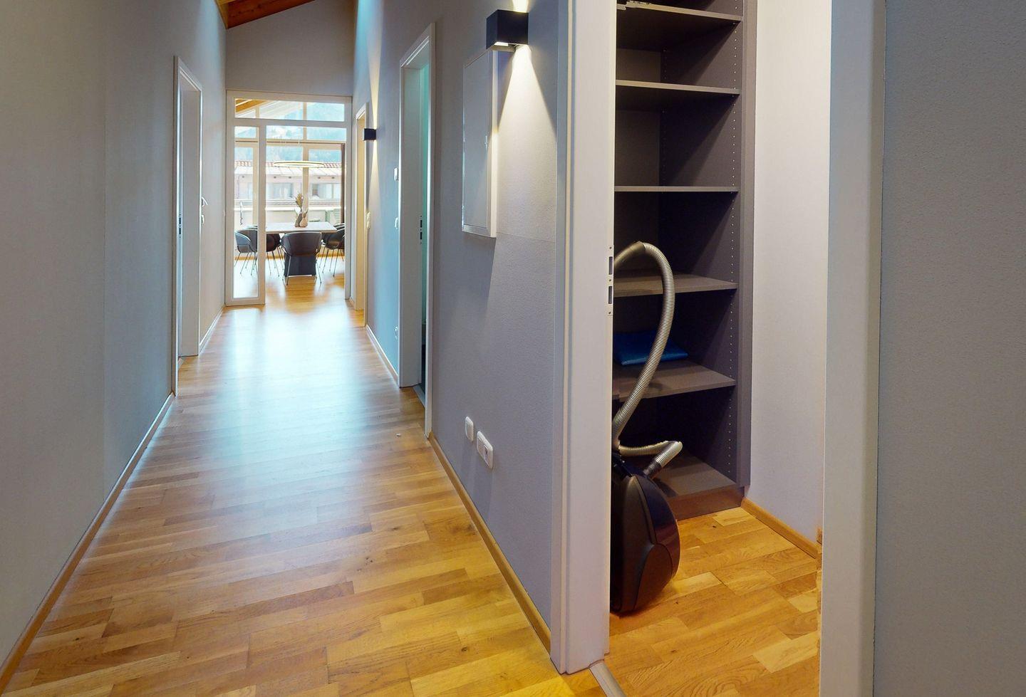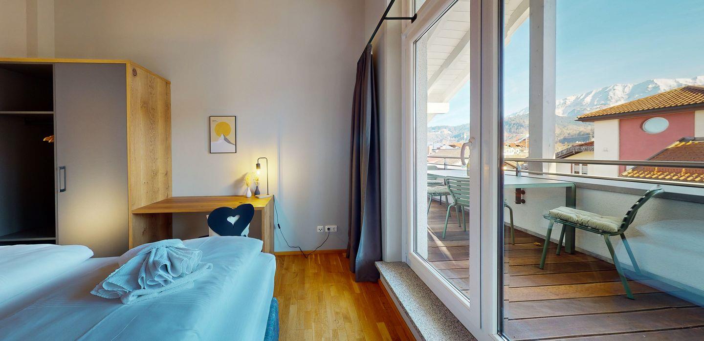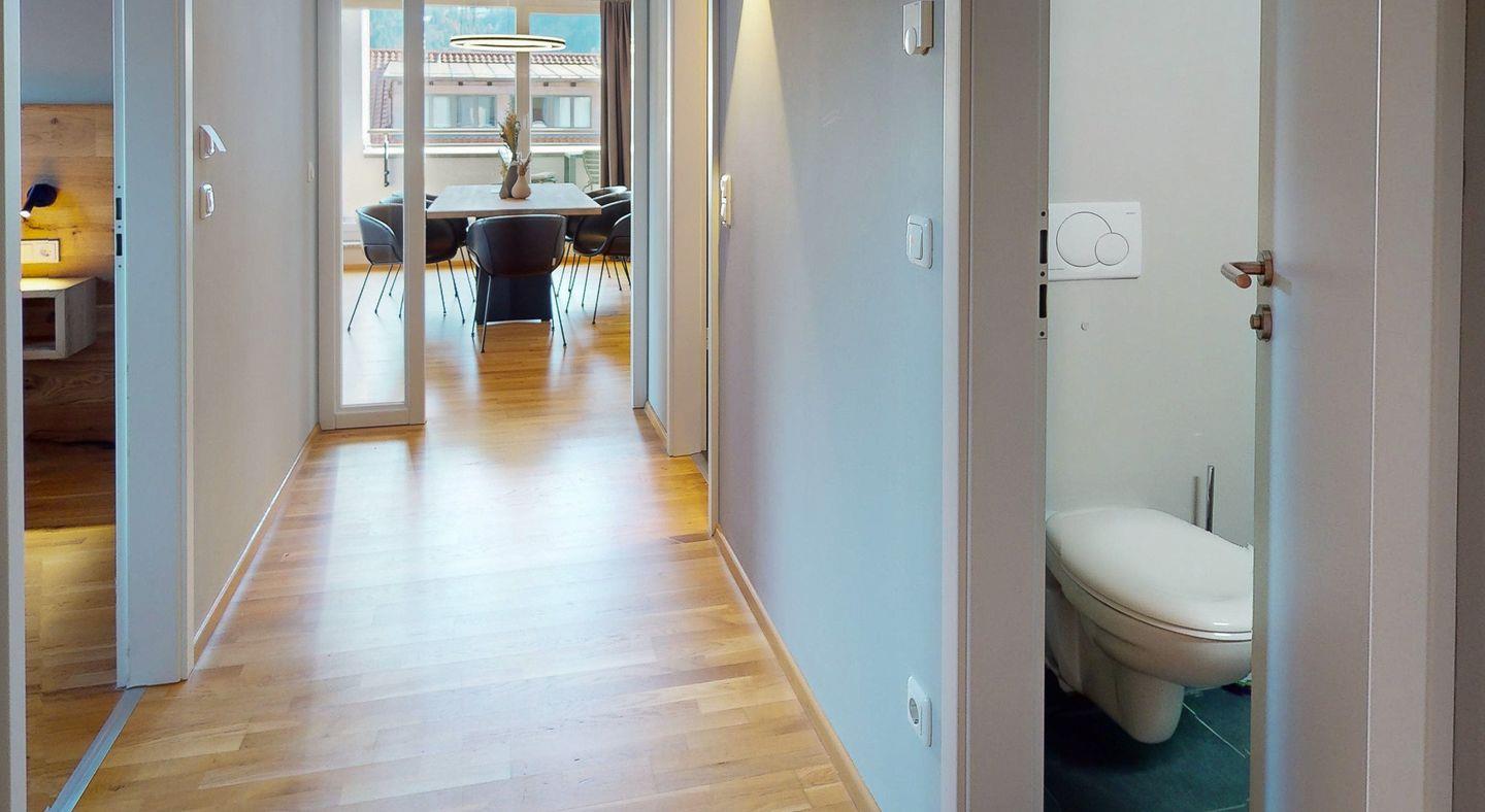 Mit insgesamt vier großzügigen Zimmern bietet die Wohnung ausreichend Platz für alle Ihre Bedürfnisse. Reichlich Fenster durchfluten die Räume mit Tageslicht und lassen über die Dächer der Stadt weit in die Berge blicken. Dazu viel natürliches Holz, gepaart mit elegantem, modernem Design ergeben eine edle Einrichtung und eine komfortable Unterkunft, in der man sich einfach wohlfühlen muss.
